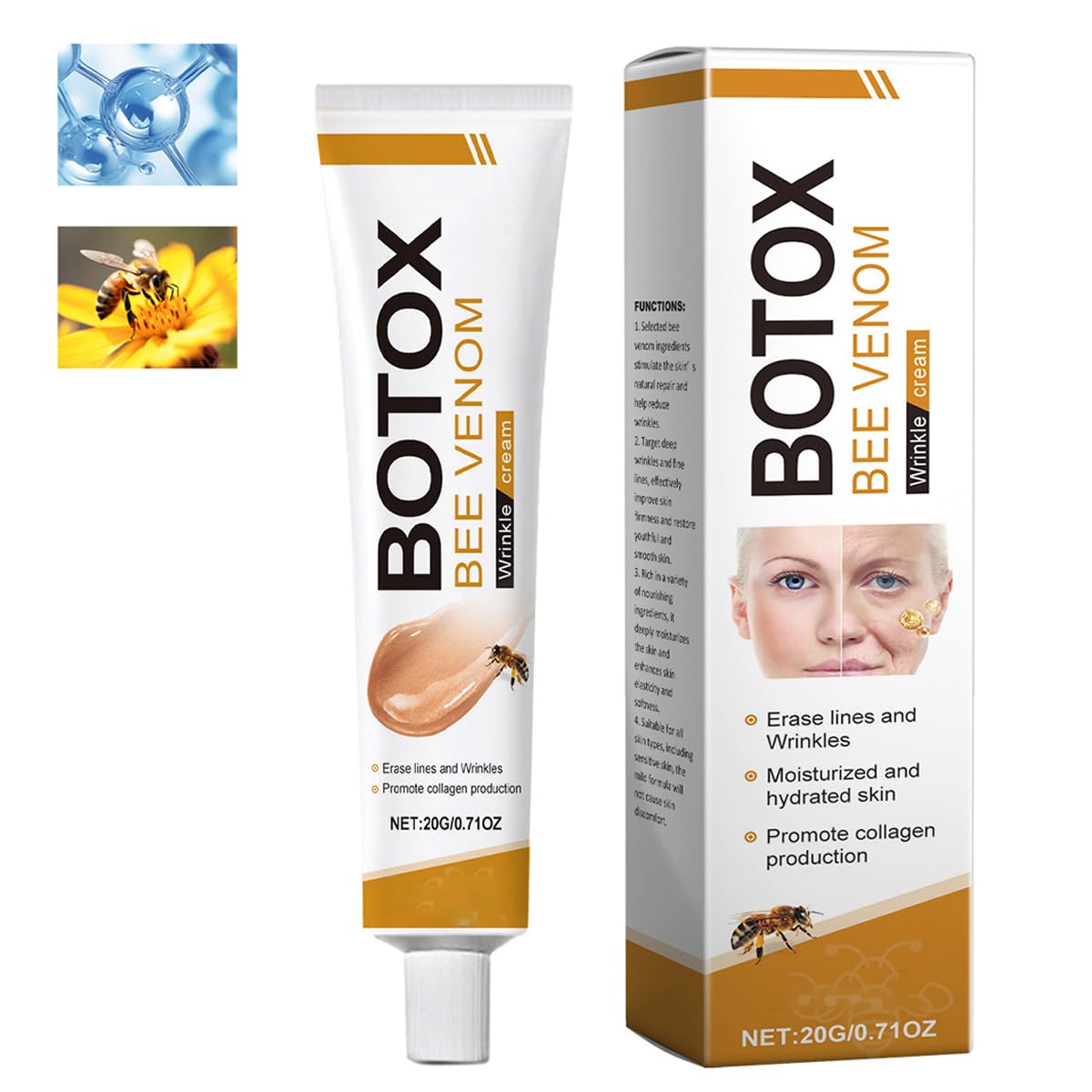 Suitable for More Skin Types : Bee cream is safe and gentle for more skin types, making bee removal cream a versatile addition to your skin care routine, can be used on face, hands, legs, neck. Visible Results : Regular use bee cream helps achieve a more youthful, radiant complexion. Helps improve skin, more radiant you. Multi-Purpose Skin Care Formula : Bee venom face cream combines and moisturizing. Bee venom cream specifically designed for a smoother, more youthful complexion. Deep Hydration Nourishment : Infused with hyaluronic acid, bee cream locks in moisture to deeply hydrate and plump the skin, leaving skin soft, supple, and resilient. Attention : Please use with caution on sensitive skin, before use, be sure to try a small area behind the ear or the inside of the wrist, wait 4 - 8 hours, observe whether there is redness, swelling, itching and other discomforts, no abnormality before normal use. Cream : Formulated to help improve delivering hydration and revitalizing skin, our bee cream absorbs effortlessly without greess.