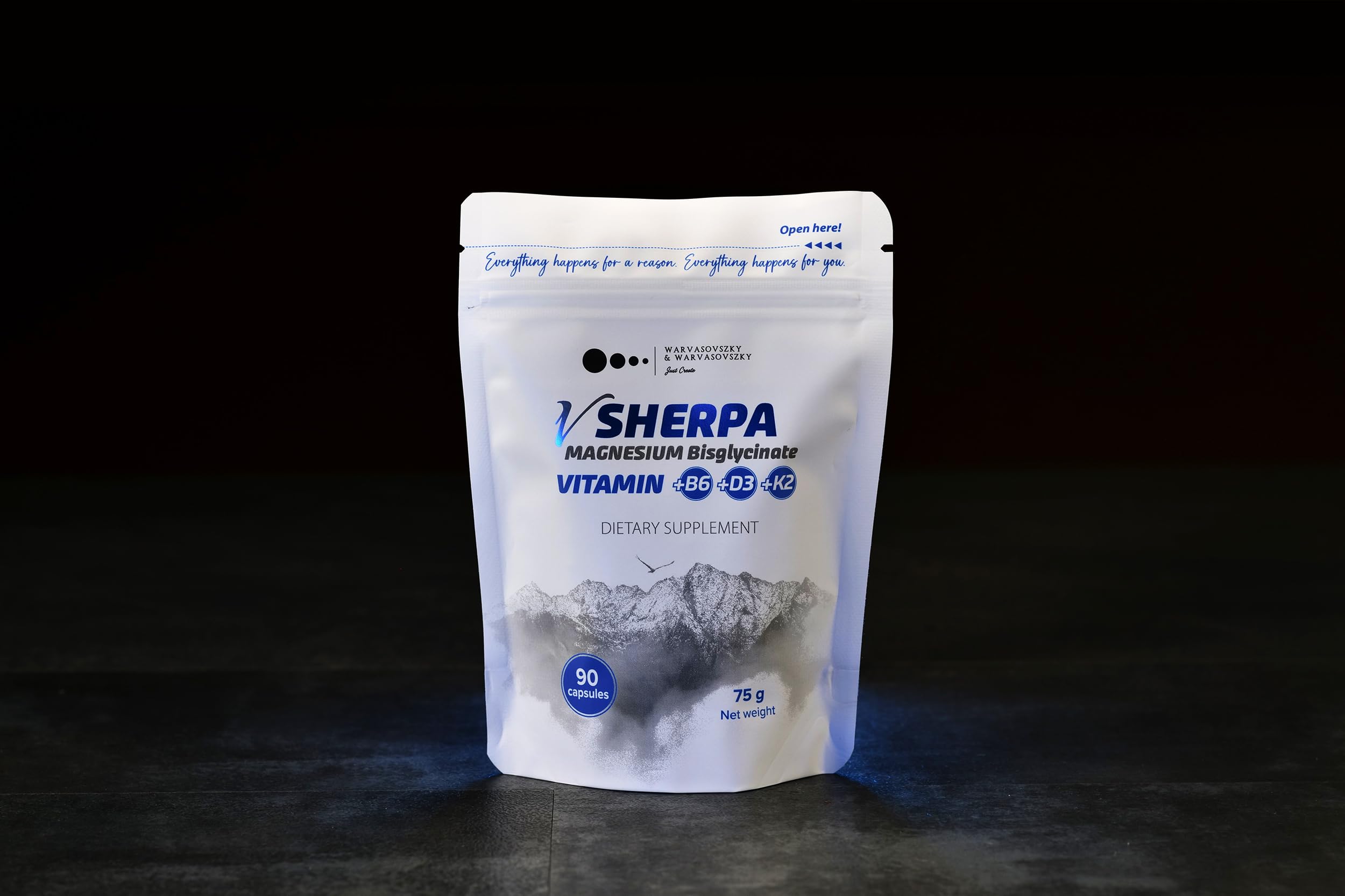vSherpa Magnesium Bisglycinate delivers 200 mg of highly bioavailable magnesium in every serving, combined with Vitamins B6, D3, and K2 for unmatched benefits. Magnesium Bisglycinate Chelate is gentle on the stomach, absorbs efficiently, and supports nerve function, muscle relaxation, energy metabolism, and stress relief. Vitamin B6 enhances magnesium uptake, Vitamin D3 boosts calcium balance for strong bones, and Vitamin K2 ensures calcium is directed to bones and teeth — not arteries. This clean, vegan formula is perfect for athletes, busy professionals, and anyone seeking better sleep, reduced cramps, improved focus, and long-term wellness. Made in a GMP-certified EU facility, free from gluten, GMOs, and titanium dioxide, with eco-friendly packaging.