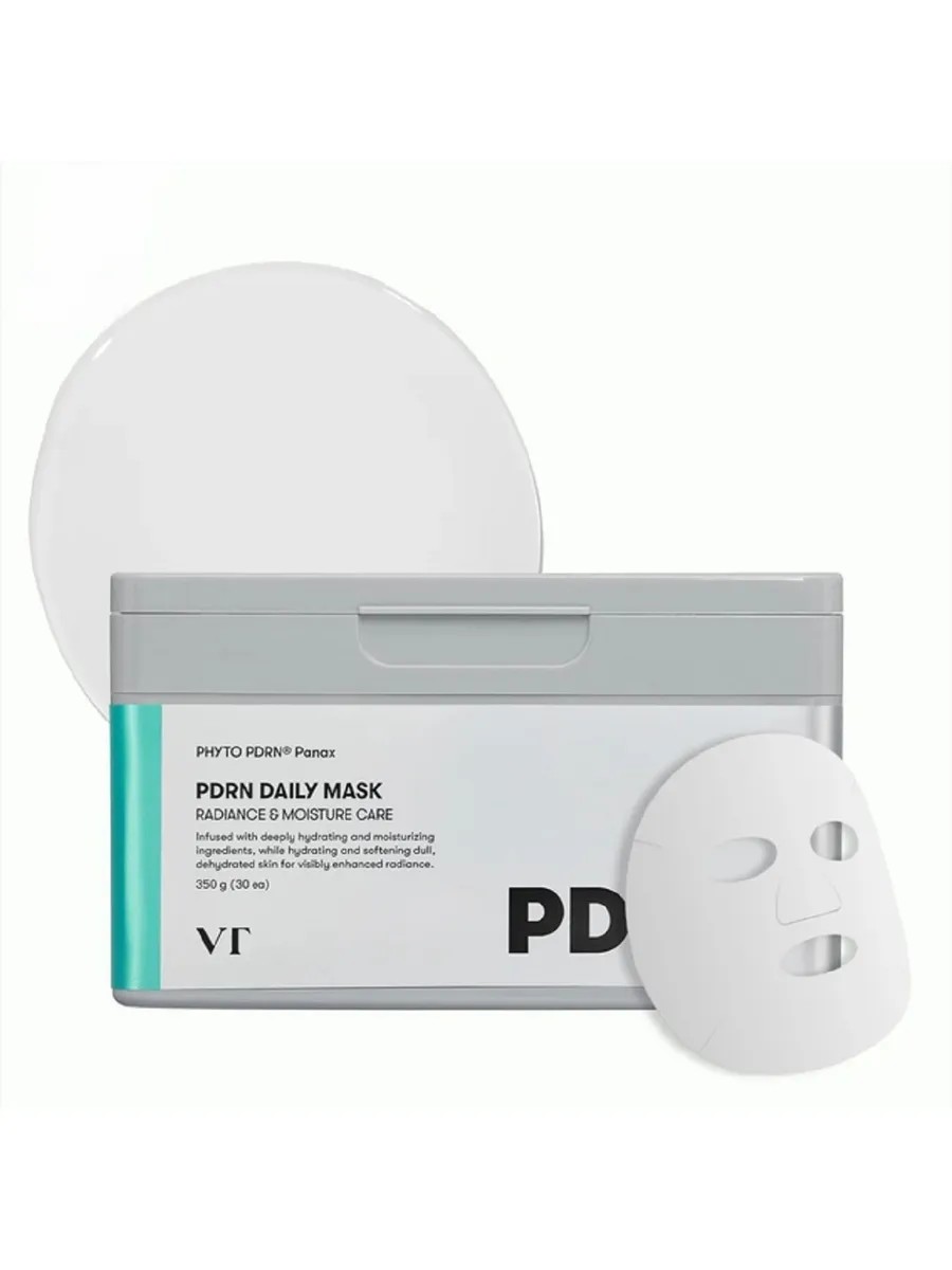 VT Cosmetics Набор тканевых маска для лица (30шт) PDRN Daily Mask Radiance & Moisture Care для сияния кожи ежедневного использования. Тканевая маска для лица насыщенная увлажняющими ингредиентами, такими как комплекс Cerasome Plus, гиалуроновая кислота и пантенол, обеспечивает необходимое увлажнение и сияние кожи, не оставляя липких следов.