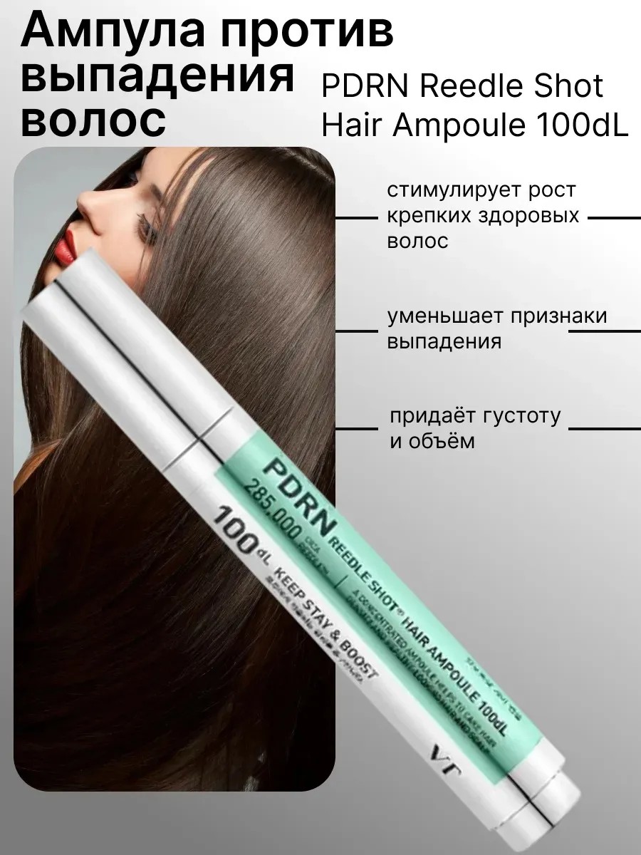 Ампула VT Cosmetics PDRN Reedle Shot Hair Ampoule 300dL питает фолликулы и улучшает их кровообращение, тем самым подавляет процесс выпадения, стимулируя рост здоровых крепких волос.