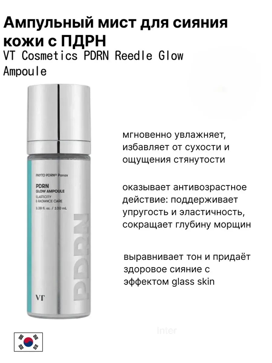 Ампульный мист VT Cosmetics PDRN Reedle Glow Ampoule мгновенно увлажняет, избавляет от сухости и ощущения стянутости, смягчает и разглаживает тусклую кожу.