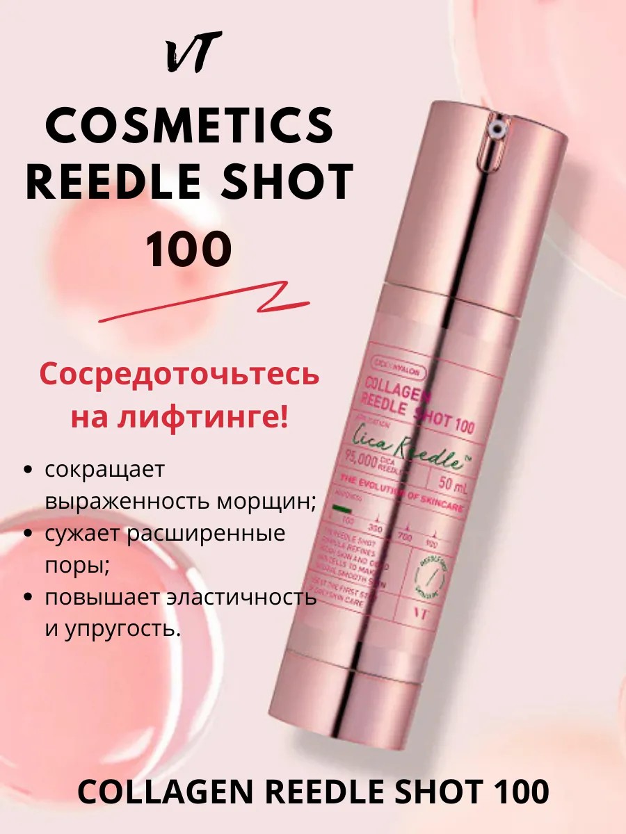 Бустер-сыворотка VT Cosmetics Collagen Reedle Shot 100 повышает эластичность и упругость, сокращает выраженность морщин и сужает расширенные поры.