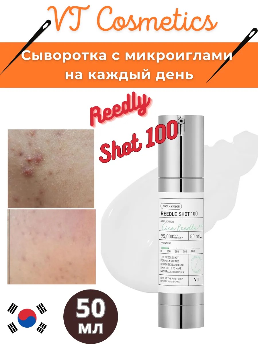 Внимание! Бустер-сыворотка с микроиглами VT Cosmetics Reedle Shot 100 может вызывать ощущение покалывания после нанесения.