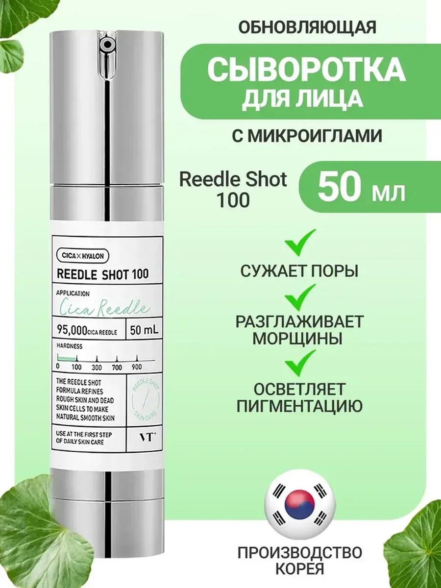 Интенсивная бустер-сыворотка с микроиглами VT Cosmetics Reedle Shot 300 запускает механизмы оздоровления и обновления кожи за счёт деликатного отшелушивания и восстановления. Действие продукта нацелено на преображение текстуры и улучшение цвета лица. При его регулярном использовании разглаживается микрорельеф — уменьшается размер и глубина пор, снижается частота проявлений гиперкератоза. Средство обеспечивает постепенное осветление пигментации различного происхождения: веснушек, постакне, пигментных пятен коричневого и жёлтого оттенков. Сыворотка восполняет дефицит влаги в роговом слое эпидермиса, придает упругость, эластичность и сияние.
