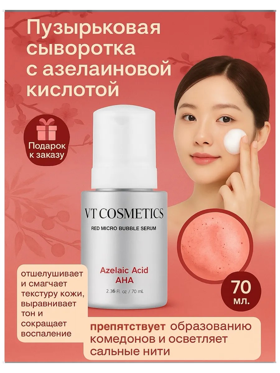 | Полное наименование товара | Пузырьковая сыворотка с азелаиновой кислотой VT Cosmetics Az AHA Red Micro Bubble Serum |