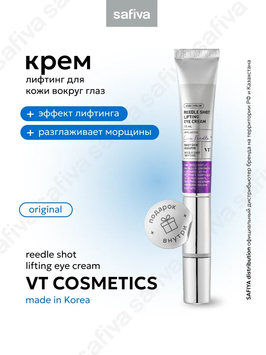 Массажный лифтинг-крем для век VT Cosmetics Reedle Shot Lifting Eye Cream - инновационная корейская косметика (карейское косметика), созданная специально для anti-age (антиэйдж, анти эйдж) антивозрастной ухода за кожей вокруг глаз.