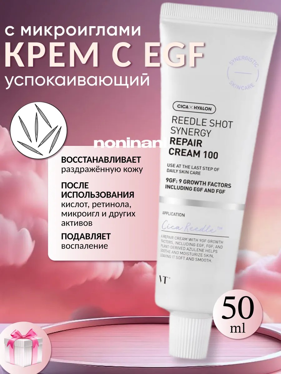 Крем VT Cosmetics Reedle Shot Synergy Repair Cream 100 восстанавливает раздражённую кожу, запускает регенерацию повреждений после использования кислот, ретинола, микроигл и других активов.