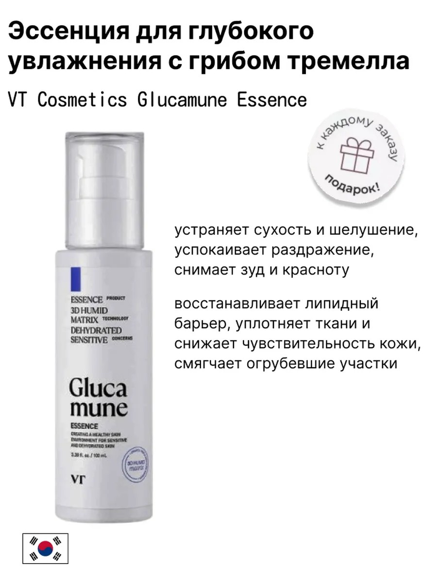 Эссенция для глубокого увлажнения с грибом тремелла VT Cosmetics Glucamune Essence устраняет сухость и шелушение, предотвращает обезвоженность, успокаивает раздражение, снимает зуд и красноту. Восстанавливает липидный барьер, уплотняет ткани и снижает чувствительность кожи, смягчает огрубевшие участки.
