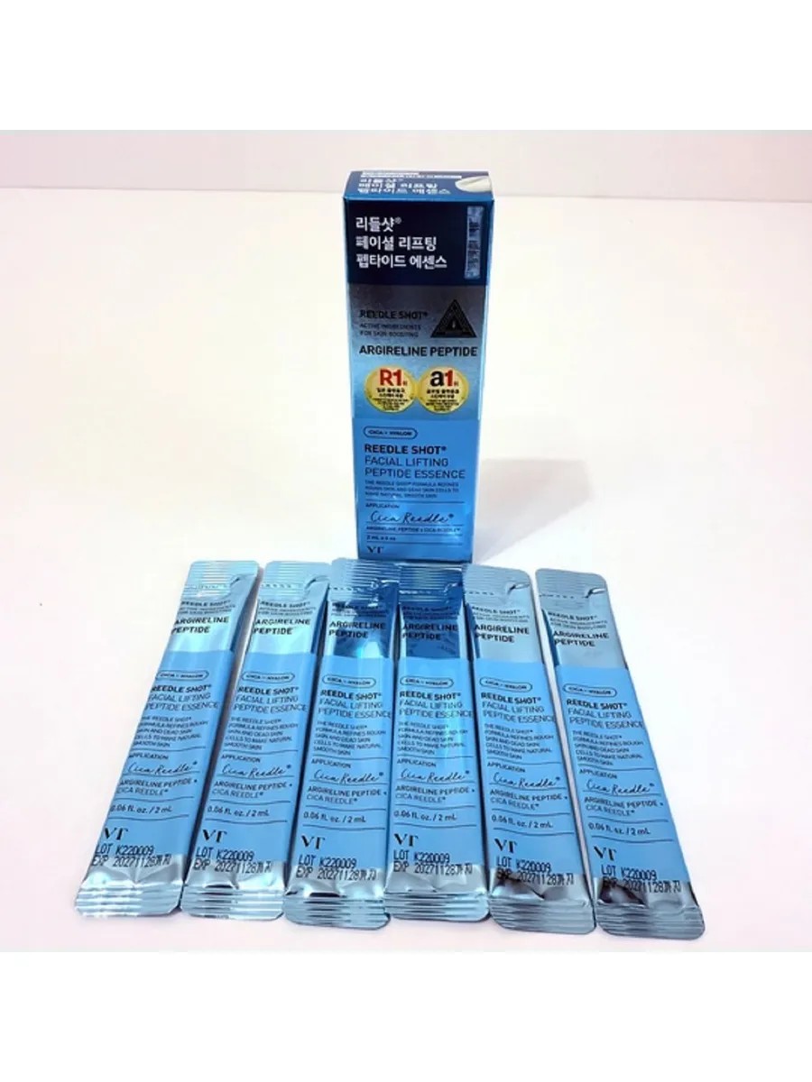 Vt Lifting Essence with Peptides (travel 2ml x 6 pcs) Cicа Hyalon Reedle Shot Facial Lifting Peptide Essence - designed to strengthen and tighten the skin with peptides and innovative microneedling technology.
