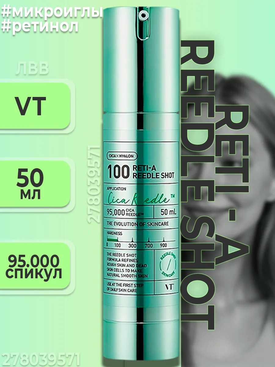 Сыворотка с микроиглами и ретинолом VT Cosmetics Reti-A Reedle Shot 100 обладает омолаживающим действием, укрепляет стенки сосудов, повышает тонус кожи, стимулирует синтез коллагена, осветляет следы постакне, снижает появление акне.