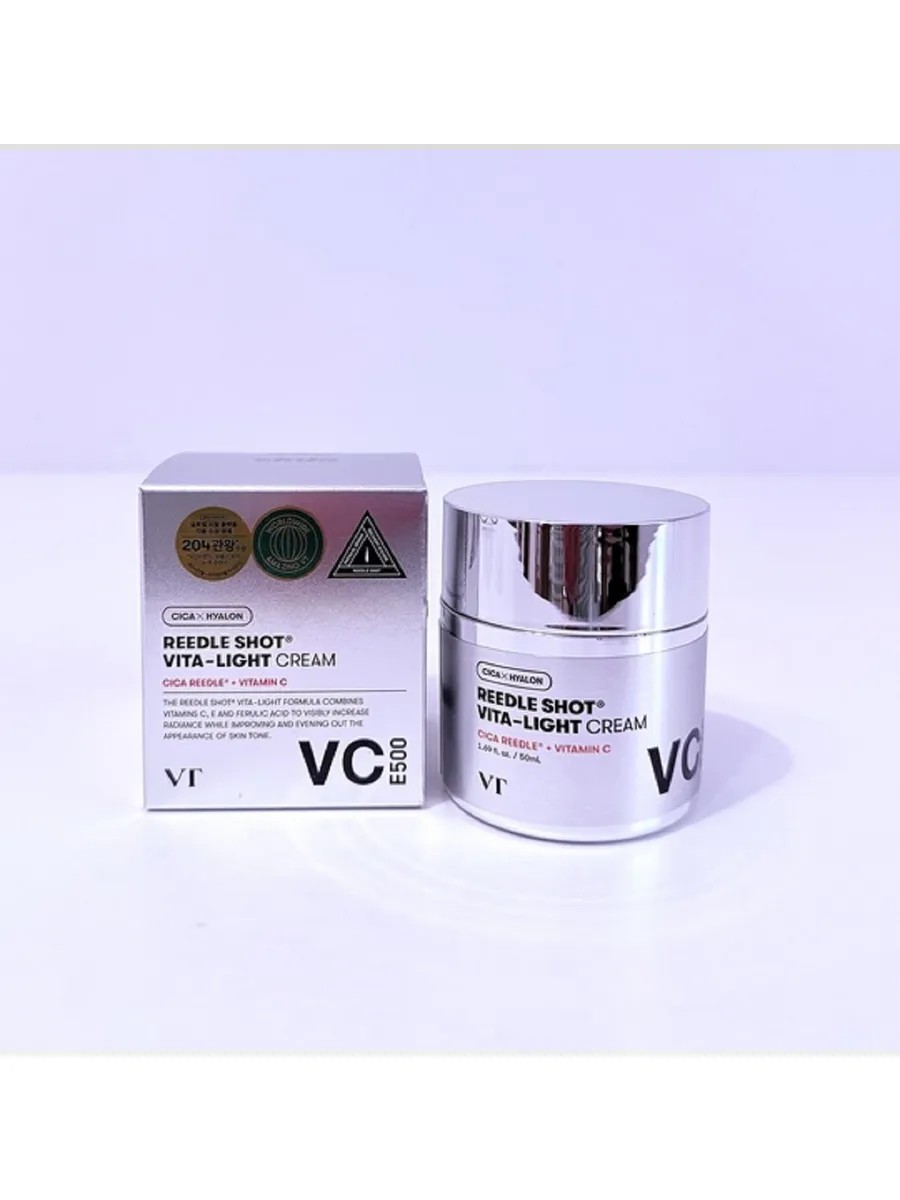 VT Осветляющий крем для лица с микроиглами и Вит С (50мл) Reedle Shot Vita-Light Cream Cica Reedle + Vitamin C эффективно избавляет от гиперпигментации, тусклости и следов усталости, борется с последствиями УФ-воздействия. Крем для лица интенсивно насыщает влагой, разглаживает морщины, подтягивает, смягчает, придаёт сияние и шелковистость.