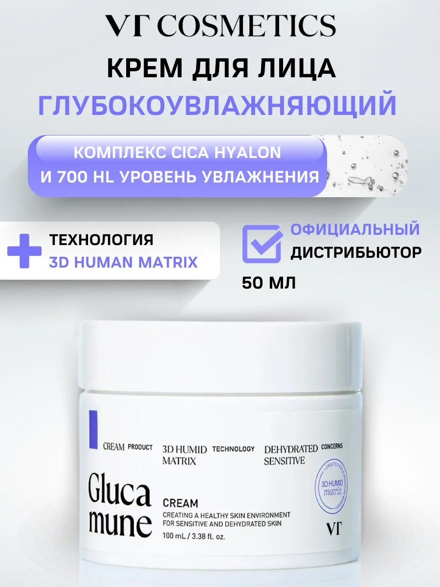 Give your skin intense restoration and nourishment with VT Cosmetics Glucamune Cream, a moisturizing face cream. Developed in Korea, this cream is ideal for dry and sensitive skin. It saturates and locks in moisture, soothes redness and inflammation, and strengthens the skin's protective barrier. The product's main component is a 57% moisturizing complex based on tremella mushroom. It also acts as a powerful antioxidant and has a mild anti-aging effect. This nourishing face cream contains powerful active ingredients for skin restoration, such as multimolecular hyaluronic acid, panthenol, and squalane. They make the skin soft and smooth, soothe itching, redness, and irritation, leaving your skin more elastic and supple. This Korean face cream is an excellent makeup base, providing a natural glow that lasts all day. Suitable for both adults and children from the first days of life, as its completely safe formula. This product makes an ideal gift for a woman's birthday or any other occasion. Take care of your skin with Korean cosmetics from VT Cosmetics and feel the difference.