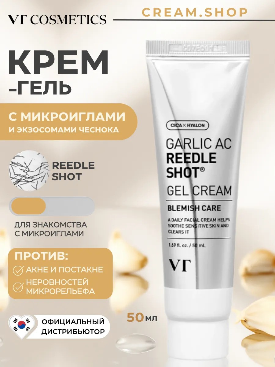 Успокаивающий крем-гель для лица с микроиглами от VT Cosmetics Garlic AC Reedle Shot Gel Cream интенсивно увлажняет жирную и проблемную кожу без чувства утяжеления, снимает воспаления и покраснения.