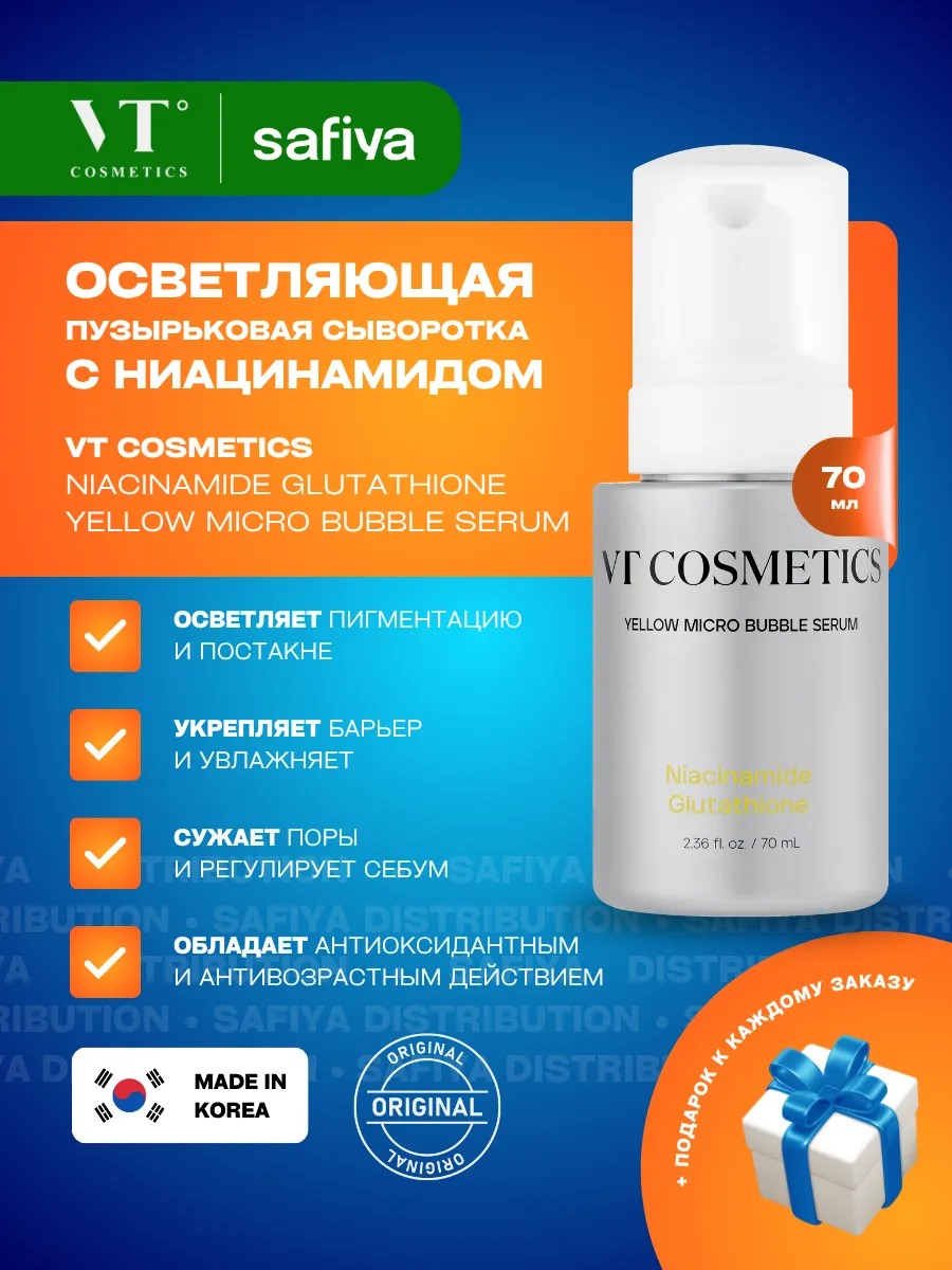 VT Niacinamide Glutathione Yellow Micro Bubble Serum - сыворотка с ниацинамидом направлена на интенсивное выравнивание тона и борьбу с проявлениями пигментации.