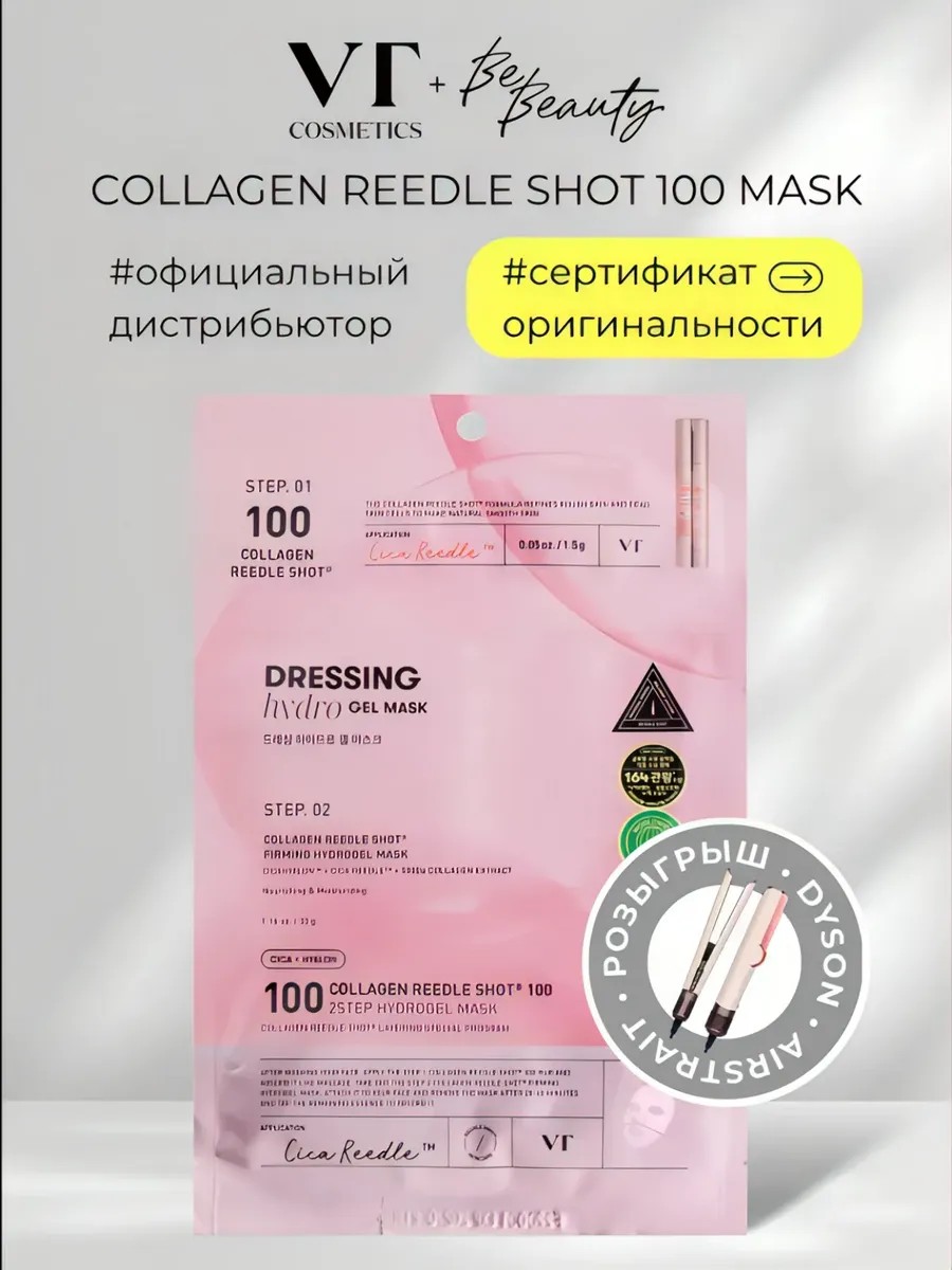 Двухфазная гидрогелевая маска с коллагеном VT Cosmetics Collagen Reedle Shot 100 2Step Hydrogel Mask — это экспресс-средство для быстрого восстановления кожи: увлажняет и избавляет от шелушения, устраняет тусклый тон, повышает упругость и эластичность.