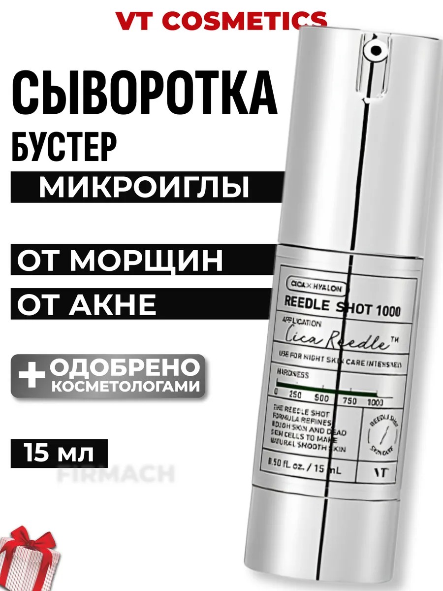 В состав VT Cosmetics Reedle Shot 1000 входят микрочастицы CICA REEDLE, керамиды NP и комплекс аминокислот, которые улучшают впитываемость кожей, укрепляют кожный барьер и обеспечивают глубокое увлажнение.