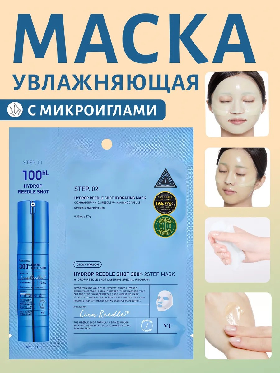 Маска VT Cosmetics Hydrop Reedle Shot 100 HL 2Step Mask — это 2 средства, которые интенсивно увлажняют глубокие слои кожи за счёт особой системы доставки компонентов.