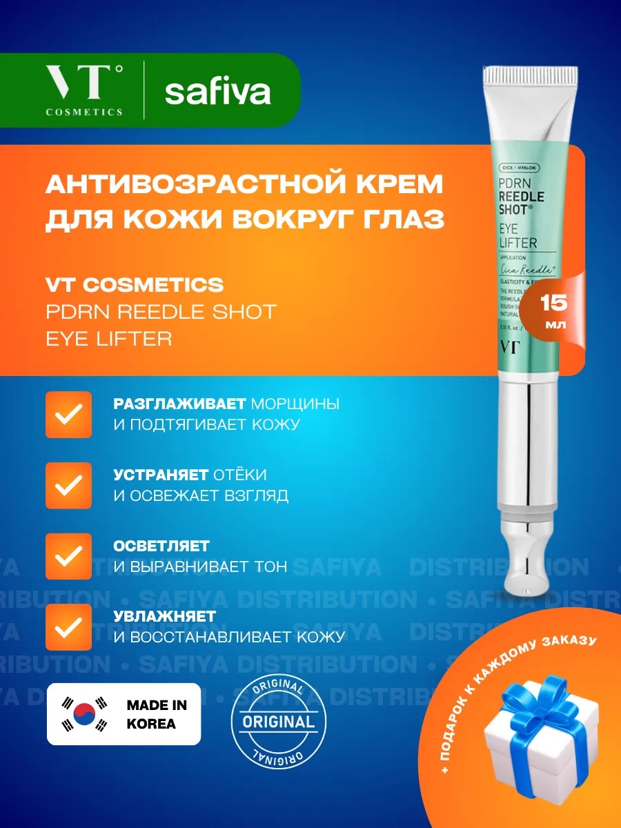VT Cosmetics PDRN Reedle Shot Eye Lifter - лифтинг крем создан специально для ухода за кожей вокруг глаз. Средство подходит для ежедневного применения и помогает бороться с признаками усталости, такими как темные круги под глазами, отеки и мешки.