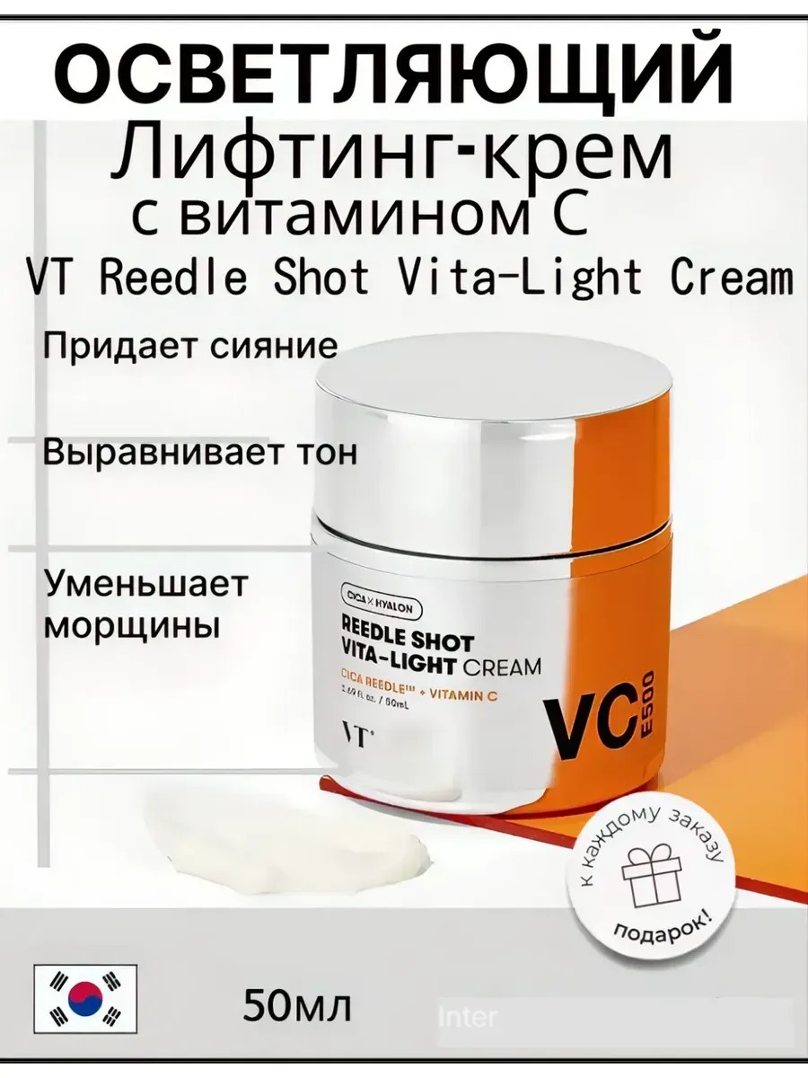 VT Cosmetics Reedle Shot Vita-Light Cream, a brightening cream with microneedles, has an antioxidant effect, restores metabolic processes, smoothes microrelief, evens out skin creases, provides deep hydration, and eliminates pigmentation.