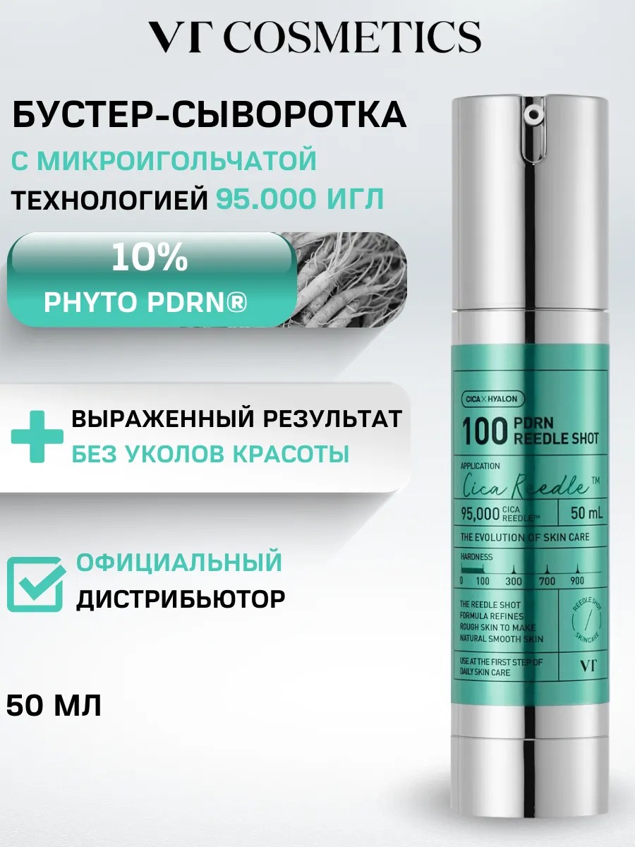 Подарите своей коже молодость и сияние с антивозрастной сывороткой для лица от VT Cosmetics PDRN Reedle Shot 100, которая создана специально для решения проблем, связанных с расширенными порами и жирным блеском. Эта корейская косметика обеспечивает не только успокаивающее воздействие, но и эффективное сужение пор. Увлажняющая сыворотка содержит микроиглы, которые помогают активным компонентам глубже проникать в кожу, обеспечивая интенсивное питание и восстановление клеток. Она помогает бороться с пигментными пятнами и морщинами, даря вашей коже заметный эффект лифтинга и молодости. Подходит для всех типов кожи, в том числе зрелой 50+ и 60+, а также комбинированной. Сыворотка для лица, произведённая в Корее, придаёт вашему лицу здоровое сияние и свежесть. Это отличный подарок для женщины на день рождения или любой другой праздник. Позвольте себе и вашим близким насладиться качественным уходом за кожей с VT Cosmetics!
