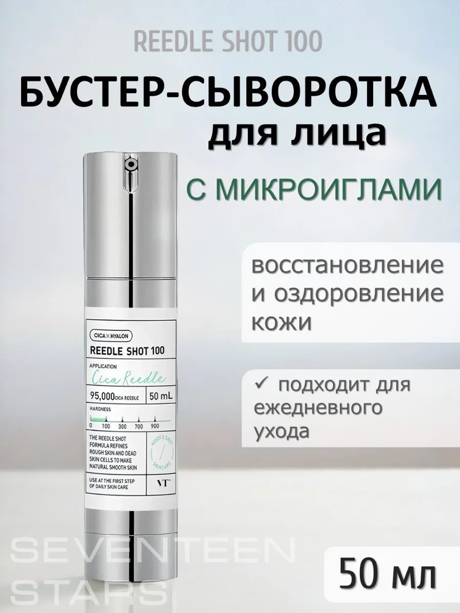Корейская косметика с микроиглами представляет собой инновационное направление в уходе за кожей. Бустер-сыворотка с микроиглами VT Cosmetics Reedle Shot 100 направлена на восстановление и оздоровление кожи, склонной к образованию акне и повышенной чувствительности, она запускает механизмы оздоровления кожи, придавая ей упругость, эластичность и сияние. Микроигольчатая технология CicaReedle (95 000 ppm) обеспечивает доставку активно действующих компонентов в глубокие слои эпидермиса и стимулирует процессы обновления клеток. Микроиглы в 14 раз меньше размера пор, их оболочка содержит 14 видов минералов, необходимых для подавления воспалительных процессов и ускорения заживления.