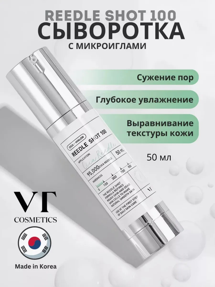 Reedle Shot 100 by VT Cosmetics is an innovative serum booster designed to improve skin texture and tone, accelerate regeneration and restoration processes. The product contains 95,000 silica spicules made from the mineral elements of the skeleton of sea sponges using the patented Cica Reedle technology.