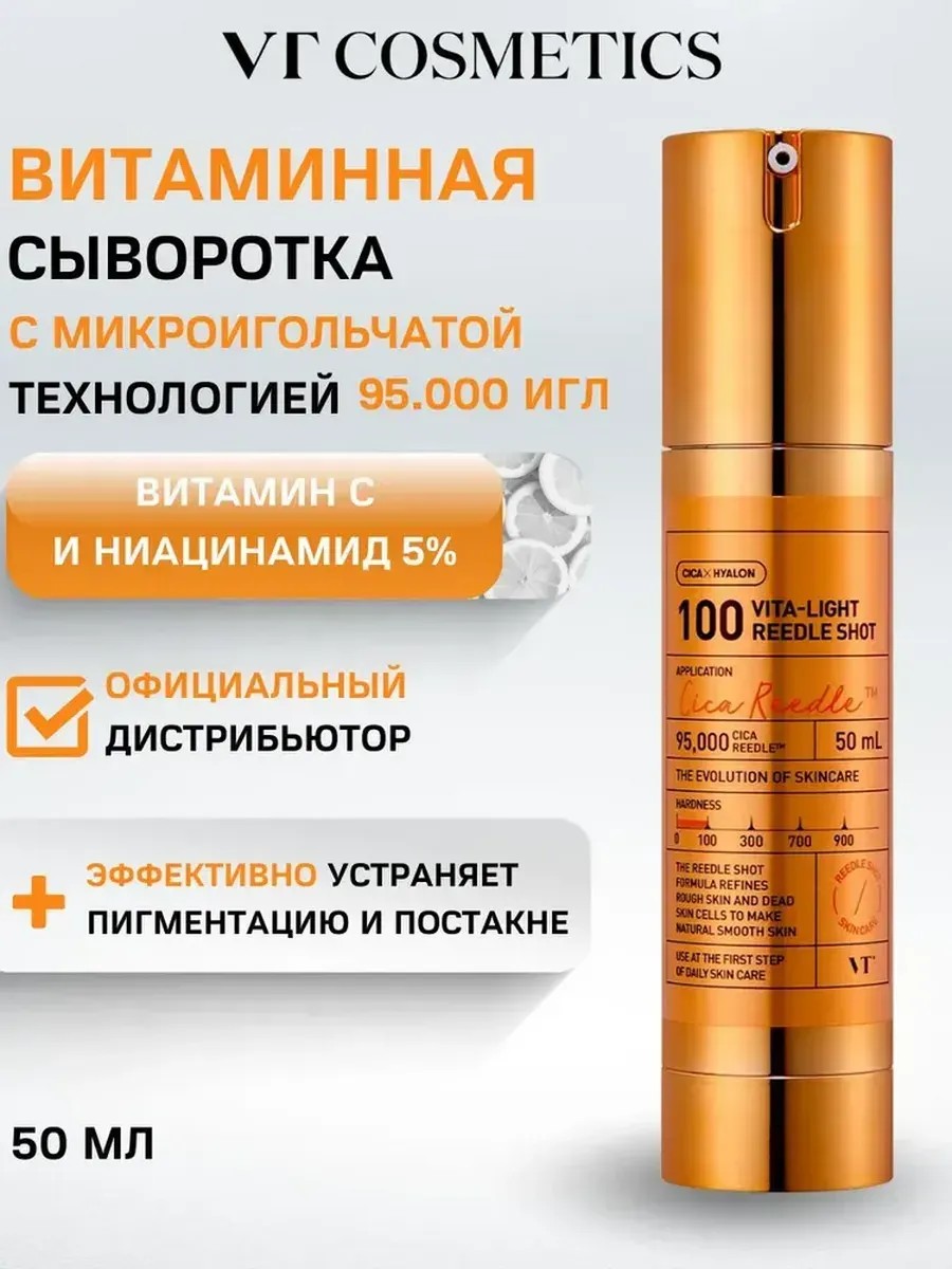 Бустер-сыворотка с микроиглами и витамином C VT Cosmetics Vita-Light Reedle Shot 300, 50 мл