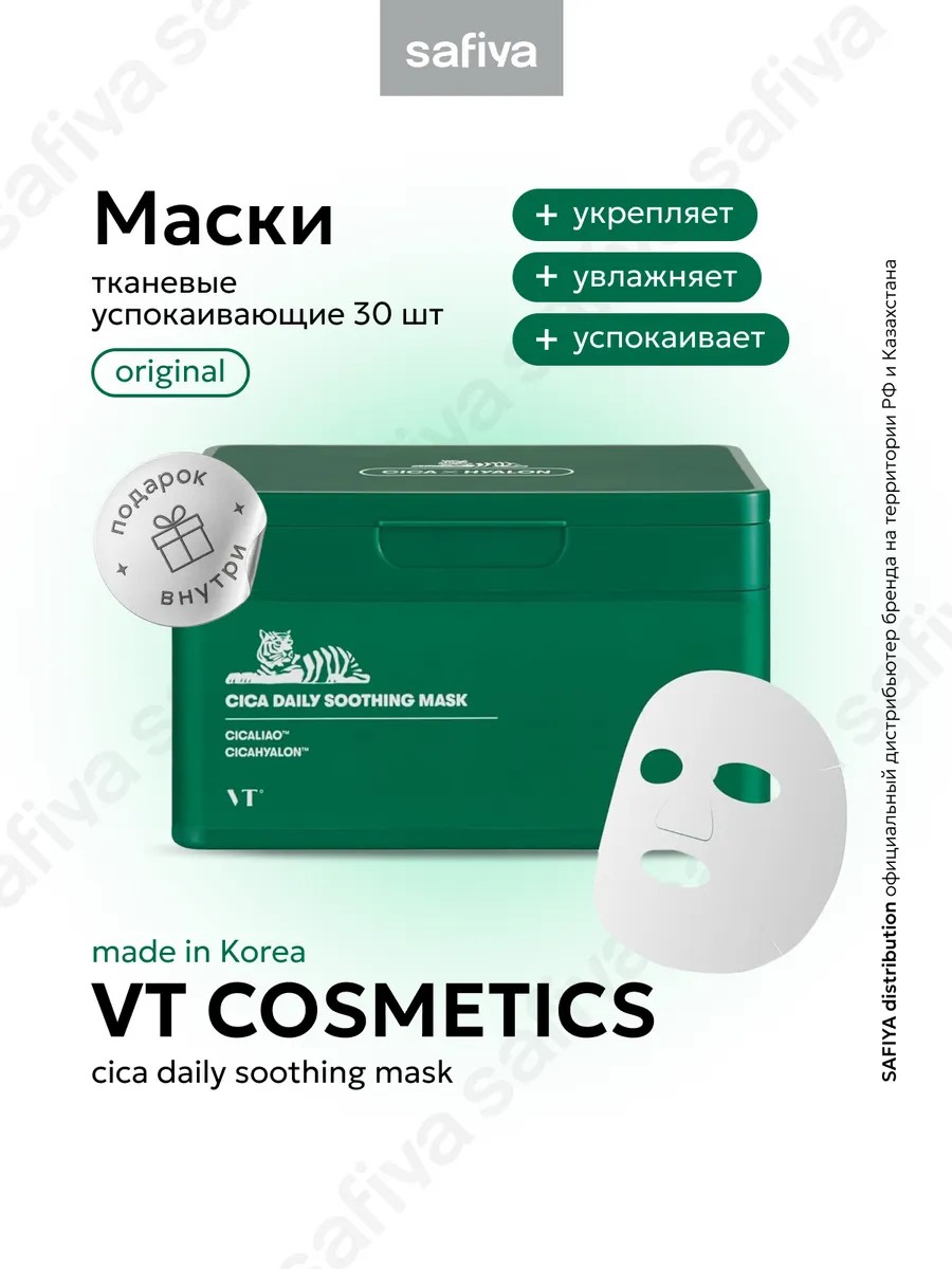 VT Cica Daily Soothing Mask is a set of daily sheet masks with a patented complex for rapid relief of redness, itching, and irritation.