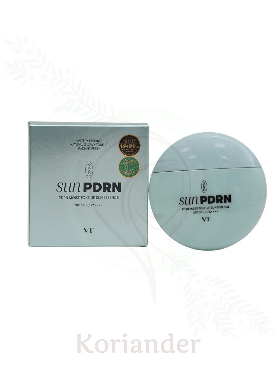 Солнцезащитная тонирующая эссенция VT Cosmetics PDRN Moist Tone Up Sun Essence SPF 50+ PA++++ на основе диоксида титана и химических фильтров нового поколения поможет защитить не только нежную кожу лица от негативного воздействия УФ-излучения и фотостарения, но и выравнивает тон, маскируя несовершенства кожи в виде пигментных пятен, куперозной сетки и постакне.