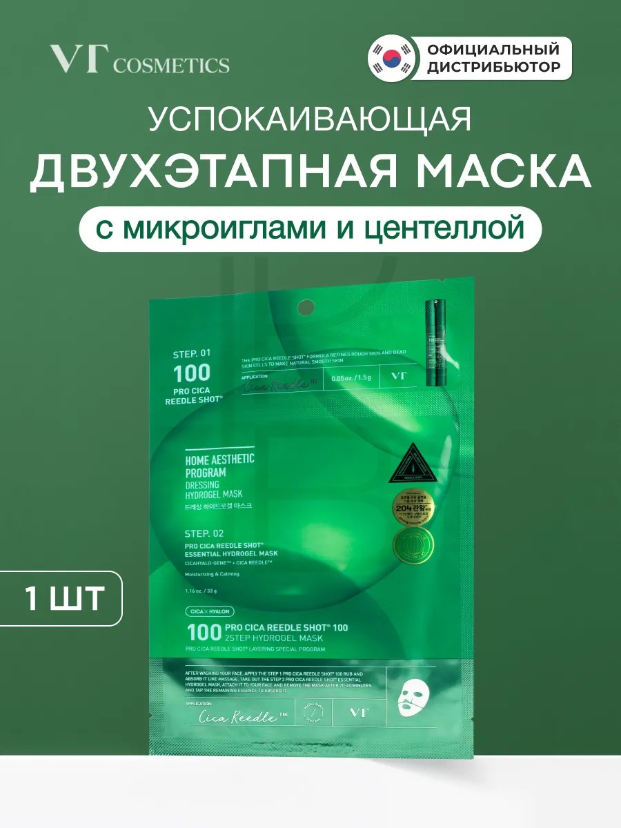 Двухэтапная гидрогелевая маска с микроиглами и центеллой VT Cosmetics Pro Cica Reedle Shot 100 2Step Hydrogel Mask — инновация в уходе за чувствительной кожей!
