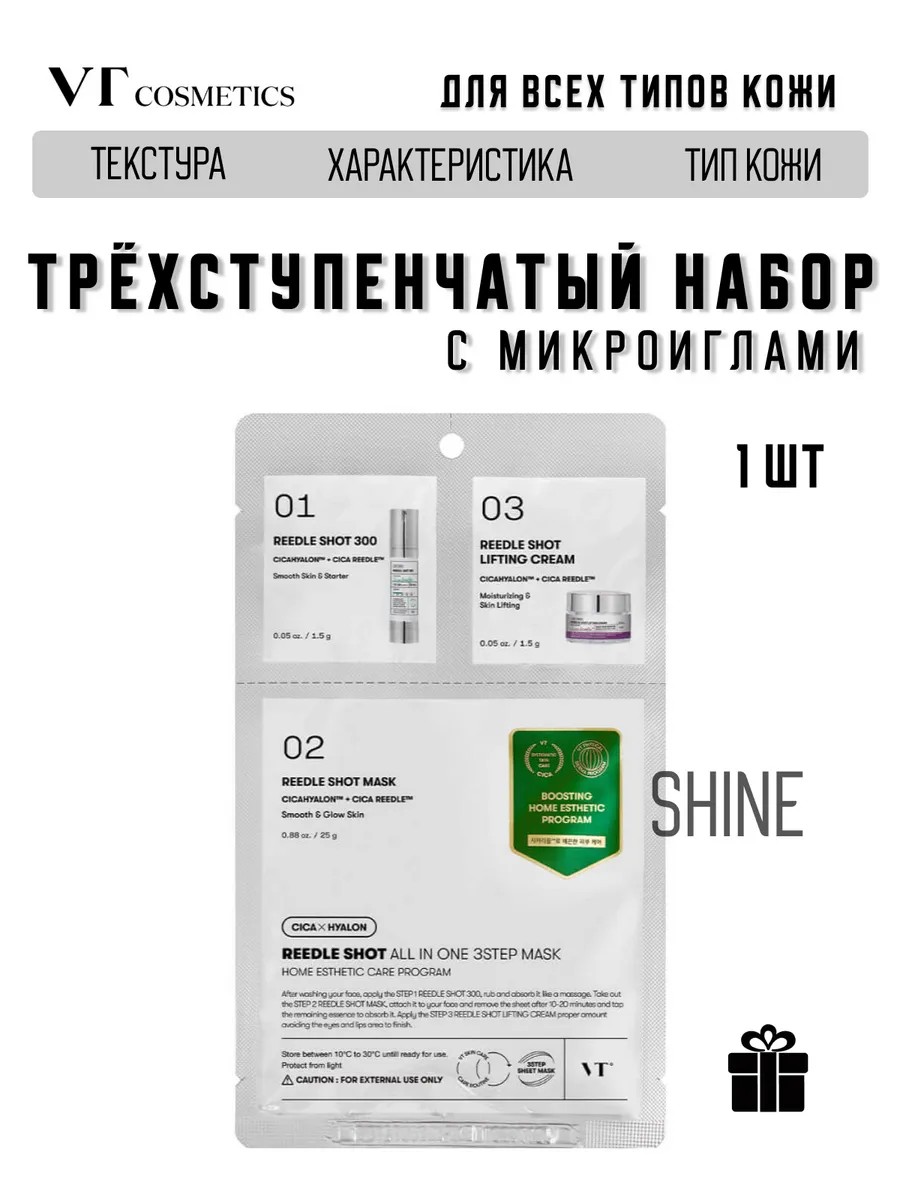 VT COSMETICS Трёхступенчатый лифтинг-набор с микроиглами Reedle Shot 1 шт