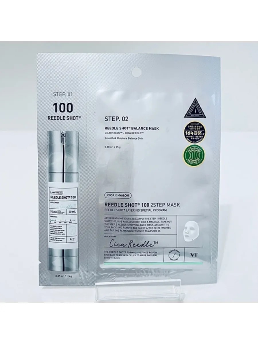 VT Two-Phase Sheet Mask with Active Microneedles, the Reedle Shot Balance 100 2Step Mask, is a unique, rejuvenating facial mask that promotes skin transformation.