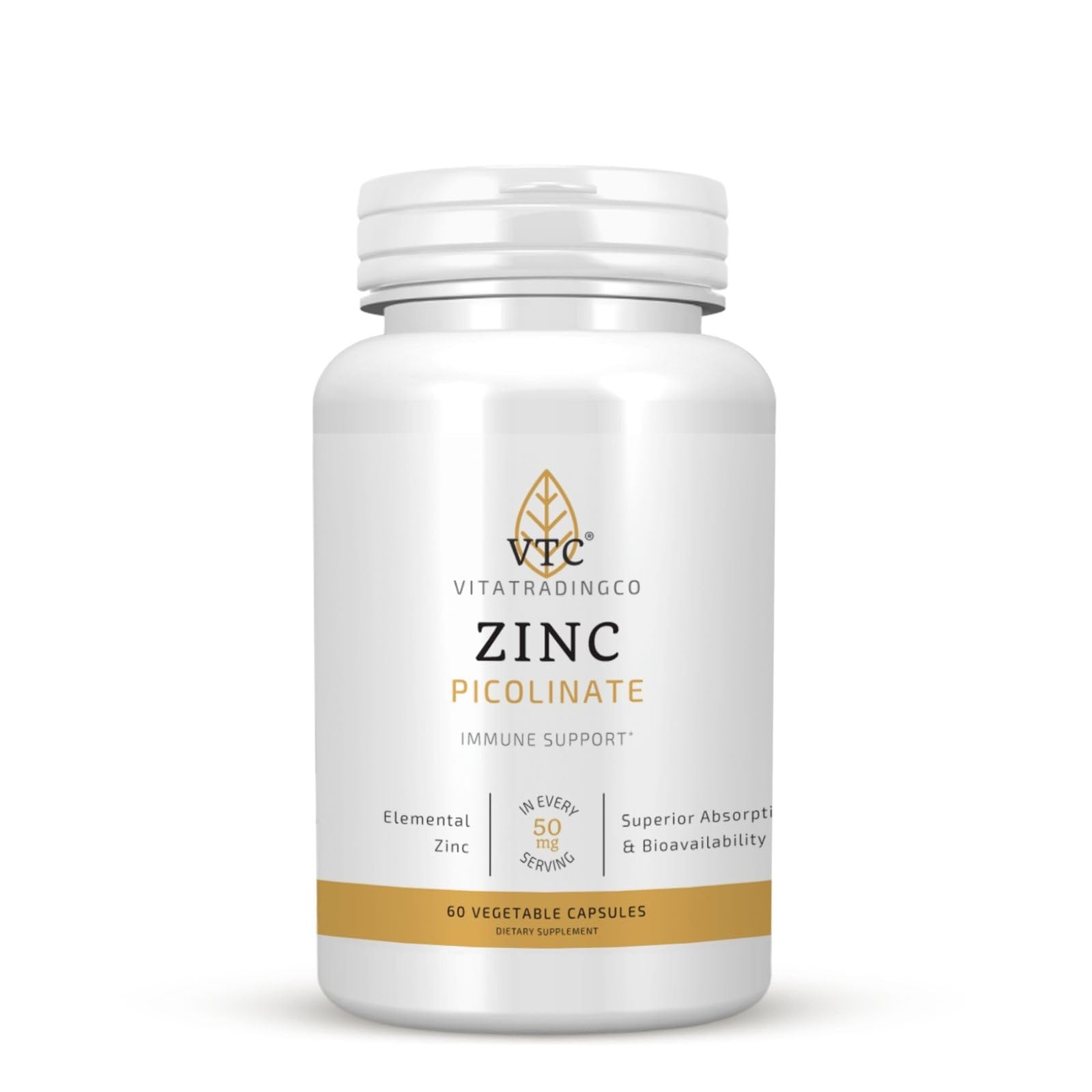 VTC VitaTradingCo. Zinc Picolinate | 50mg Elemental Zinc | Highly Absorbable | Immune & Antioxidant Support | for Skin Health & Cellular Function | 60 Veggie Capsules
