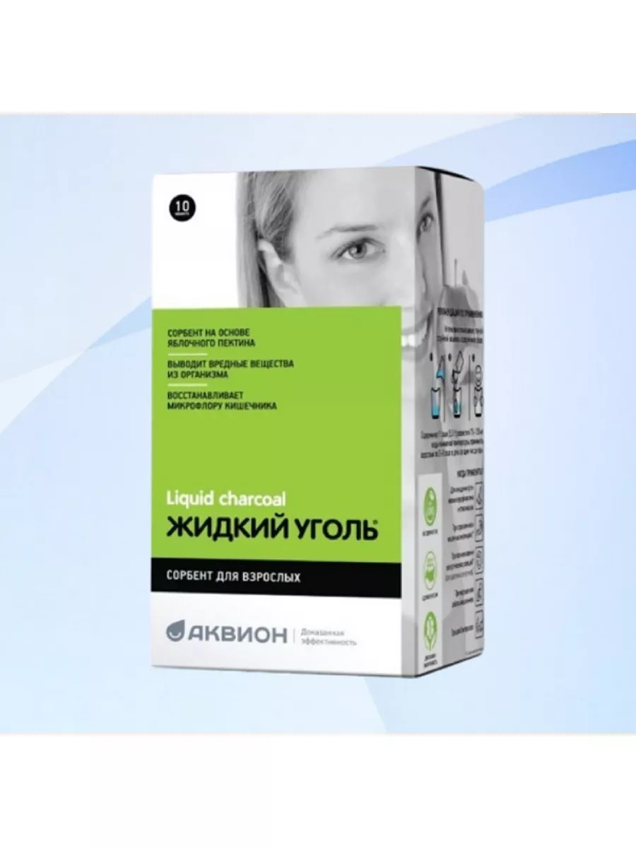 Жидкий уголь комплекс с пектином - биологически активная добавка (БАД) к пище, которая помогает организму быстро и эффективно очищаться от токсинов. Каждая упаковка содержит 10 саше по 5 грамм, что позволяет легко дозировать и принимать средство в любом месте и в любое время. В состав продукта входят только натуральные компоненты - уголь, пектин, инулин и таурин - сорбент, пребиотик и детоксиканты в одном препарате. Выводит вредные вещества: токсины, аллергены, продукты распада лекарств, желчные кислоты, гистамин, билирубин, тяжелые металлы. Площадь сорбции пектина в десятки раз выше, чем у активированного угля, а также он выводит тяжелые металлы в 6-10 раз лучше, чем другие сорбенты. Пищевая добавка является отличным решением для поддержания здоровья кишечника. Для очищения организма и профилактики интоксикации: по 1 саше 2 раза в сутки в течение 2 недель. При необходимости курс можно повторить через 1 месяц.Способ применения и дозыСодержимое 1 саше (стика) (5,0 г) или 2 чайные ложки (5,0 г) развести в 75-100 мл воды комнатной температуры,Принимать взрослым по 2-3 саше (стика) или 4-6 чайных ложек в день за один час до еды.Продолжительность приема 1-2 недели.Перед применением рекомендуется проконсультироваться с врачомКАК ПРИНИМАТЬ «ЖИДКИЙ УГОЛЬ»?Интенсивно помешивая, тонкой струйкой всыпать содержимое саше в воду.1 саще 2-3 раза в день за 1 час до еды.Внимание! Между приемом любого лекарственного препарата и энтеросорбента должно пройти не менее 1 часа.