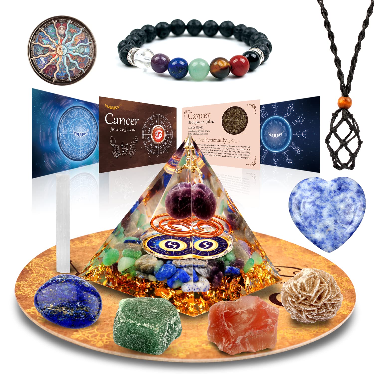 ??lucky Gift and Carefree After-Sales Service VuuuuuV Company offers a new gift box for this set, which is beautiful, environmentally friendly, structured and anti-stress.This Zodiac Energy with Orgonit Pyramide Set is the perfect gift for birthdays, festivals, anniversaries and etc. This product offers you carefree customer service if you have any problems with the product, please contact us via .?? creative exclusive accessories The set also contains a beautiful and mysterious cancer-colored metal medallion, a chakra bracelet made of volcanic stone and seven chakra edelstones, a selenit with the effect of clearing crystals, an introductory card in the knowledge of the zodiac, a beautiful fabric pocket, all of themThese beautiful, creative and exclusive accessories make this zodiac energy set even more beautiful with orgonite pyramid.??Cient mysterious pattern altar good materials with astrological patterns and old symbols, make a retro and exquisite orgonite pyramid energy altar (7in), which can absorb more constellation energy.Placing orgonite pyramids, lucky stones and associated accessories on the energy altar can collect constellation energy for the medicinal crystal energy set, and it is also a very nice decoration.?? Cancer lucky stones The lucky stones represent the energy of the cancer.The four stones correspond to emotions, career, health and evil spirits and help in a positive way.With hand -braided ropes, the stones become lucky chains.If you want to reinforce one of the energies, put the corresponding gem in a net bag and carry it on your chest to maintain a clear energy boost and to double your luck.?? meaning of the pyramid: pyramid (2 "" * 2"" * 2 "") with cancer energy stones (Red Onyx, Desert Rose, Aventurin, Lapis Lazuli), especially for her cancer. Compared to a normal pyramidAnd to improve mental health more precisely, to reduce negative charges, to gain positive energy, to promote chakra practice and to quickly get into a meditative state.??LUCKY GIFT AND CAREFREE AFTER-SALES SERVICE vuUUuv Company bietet eine neue Geschenkbox für dieses Set, die wunderschön, umweltfreundlich, strukturiert und Anti-Stress ist. Dieses Zodiac Energie mit Orgonit Pyramide Set ist das perfekte Geschenk für Geburtstage, Feste, Jubiläen und etc. Dieses Produkt bietet Ihnen einen sorglosen Kundendienst, wenn Sie irgendwelche Probleme mit dem Produkt haben, kontaktieren Sie uns bitte über . ??KREATIVES EXKLUSIVES ZUBEHÖR Das Set enthält auch ein wunderschönes und mysteriöses krebsfarbenes Metallmedaillon, ein Chakra-Armband aus Vulkangestein und sieben Chakra-Edelsteinen, einen Selenit mit der Wirkung von Clearing-Kristallen, eine Einführungskarte in das Wissen des Tierkreises, eine schöne Stofftasche, all diese schönen, kreativen und exklusiven Accessoires machen dieses Tierkreis-Energie-Set mit Orgonit-Pyramide noch schöner. ??ANCIENT MYSTERIOUS PATTERN ALTAR Gute Materialien mit astrologischen Mustern und alten Symbolen, machen einen retro und exquisite Orgonit Pyramide Energie Altar (7in), die mehr Konstellation Energie aufnehmen kann. Das Platzieren von Orgonit-Pyramiden, Glückssteinen und zugehörigem Zubehör auf dem Energie-Altar kann Konstellationsenergie für das Heilkristall-Energie-Set sammeln, und es ist auch eine sehr schöne Dekoration. ??Krebs Glückssteine Die Glückssteine repräsentieren die Energie des Krebses. Die vier Steine entsprechen den Emotionen, der Karriere, der Gesundheit und den bösen Geistern und helfen auf positive Weise. Mit handgeflochtenen Seilen werden die Steine zu Glücksketten. Wenn Sie eine der Energien verstärken möchten, legen Sie den entsprechenden Edelstein in einen Netzbeutel und tragen Sie ihn auf der Brust, um einen deutlichen Energieschub zu erhalten und Ihr Glück zu verdoppeln. ??Bedeutung der Pyramide: Pyramide (2"" * 2"" * 2"") mit Krebs Energie Steine (Red Onyx, Desert Rose, Aventurin, Lapis Lazuli), speziell für Ihren Krebs. Im Vergleich zu einer normalen Pyramide hilft sie Ihnen, Ihre körperliche und geistige Gesundheit genauer zu verbessern, negative Ladungen abzubauen, positive Energie zu gewinnen, die Chakra-Praxis zu fördern und schnell in einen meditativen Zustand zu gelangen.vuUUuv Horoskop-Orgon-Pyramide, Krebsheilungskristall-Geschenkset, Sternzeichensteine ??zum begleitenden Geburtsstein, für Astrologie, Reiki, Energie, Meditation