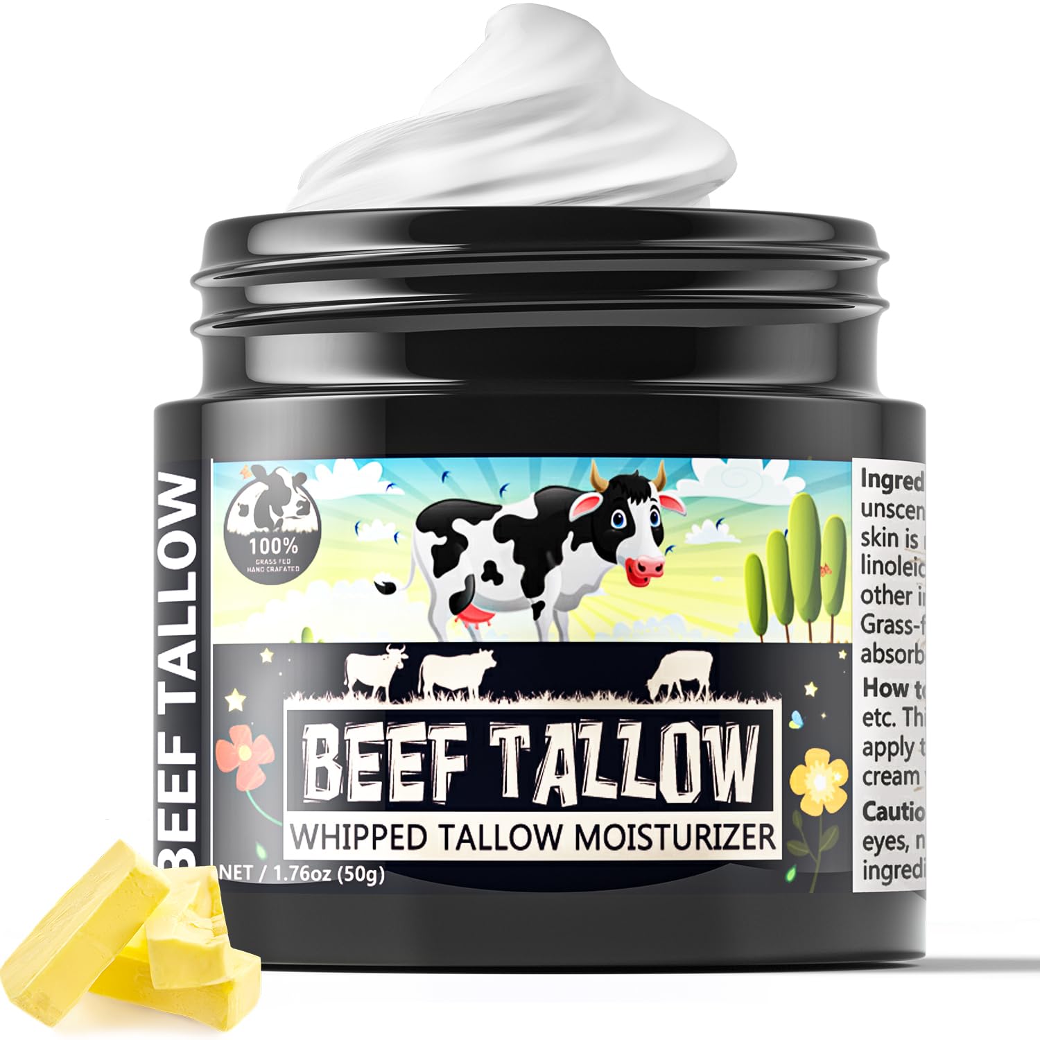 Easily Absorbed: The light, non-greasy texture of this Beef Tallow Facial Moisturiser is quickly absorbed into the skin upon application, allowing you to apply make-up or go about your daily activities immediately, without any burden. Gentle and Non-Irritating: Our Tallow Face Moisturiser focuses on the production and efficacy of natural ingredients, without artificial fragrances, colours or preservatives to provide the purest care for your skin, rigorously dermatologically tested and suitable for all skin types, including sensitive skin. Improve Skin Texture: Our Tallow Face Moisturiser deeply moisturises the skin with properties that support skin repair and regeneration, effectively improve dry and rough skin conditions, enhance skin radiance, increase skin elasticity and promote skin radiance and vitality. Superior Hydration: Beef Tallow for Skin quickly penetrates the skin to replenish and lock in moisture, helping to improve elasticity and firmness, reduce the appearance of fine lines and wrinkles, and keep skin hydrated and smooth for longer, eliminating dryness and roughness. 100 Natural Grass-Fed Beef Tallow: We only use high quality beef tallow from 100 grass-fed cows, which is rich in vitamin E, fatty acids and a variety of minerals that deeply moisturise the skin, strengthen the skin's barrier function and protect it from external environmental aggressions.