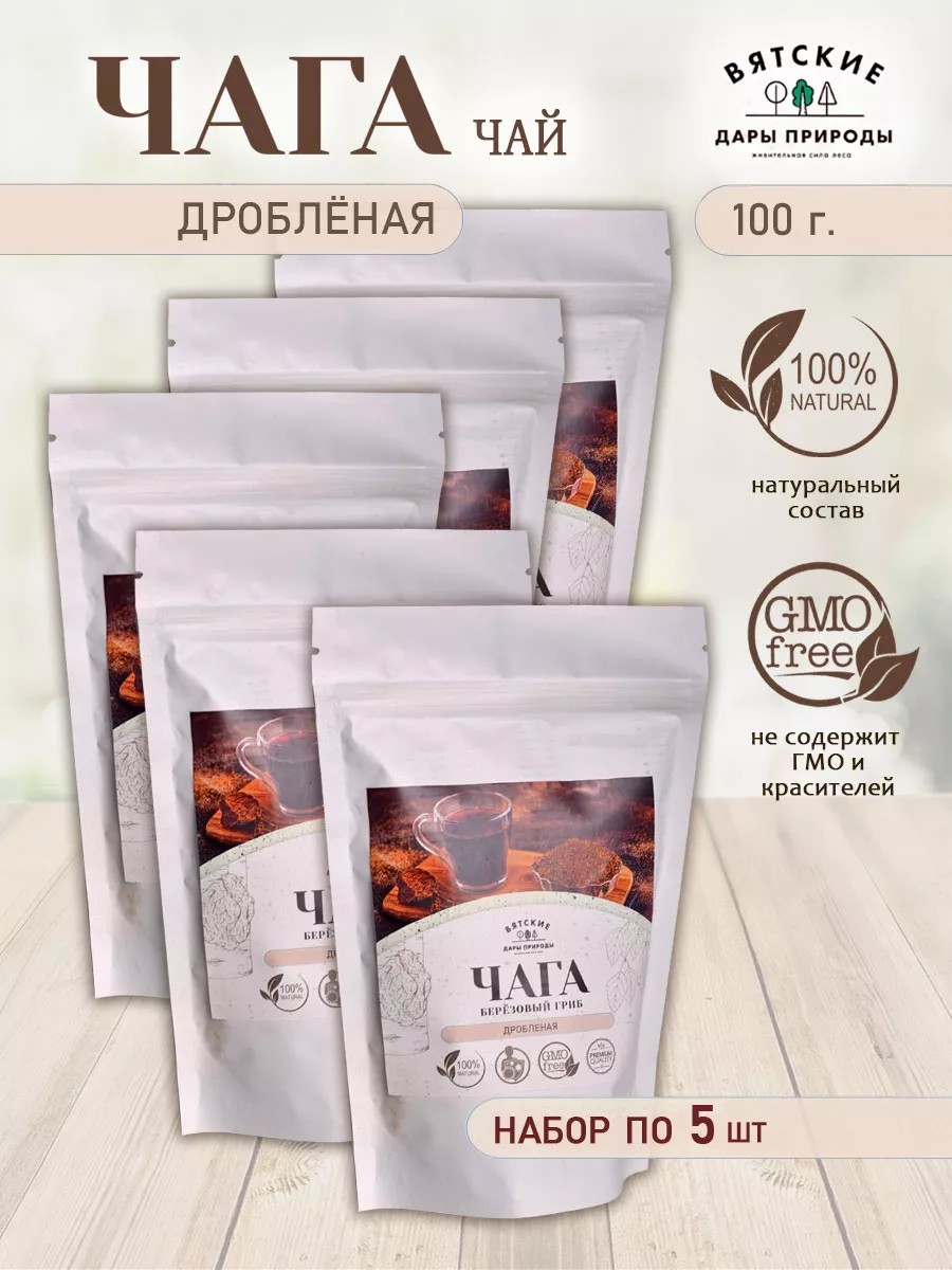Вятские Дары Природы Набор Чага Чай березовая дробленая 5 шт по 100 гр.