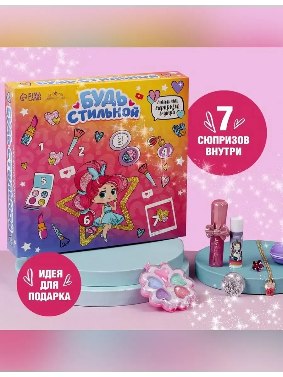 Give your princess a unique children's cosmetics set that includes everything she needs to create a bright and stylish look. The set includes eyeshadow, lip gloss, lip balm, glitter, a ring, and a pendant, making it the perfect gift for little fashionistas. This set not only develops creativity but also makes girls feel like true beauties. Packaged in a beautiful box, it makes a great gift for a birthday or any other occasion. The set is made of safe materials such as cardboard, metal, and plastic, ensuring safe use. Suitable for girls ages 3 and up, it's a great way to spend time with friends, creating vibrant looks and complimenting each other. Don't miss the opportunity to delight your little princess with this wonderful set—one she'll remember for a long time!