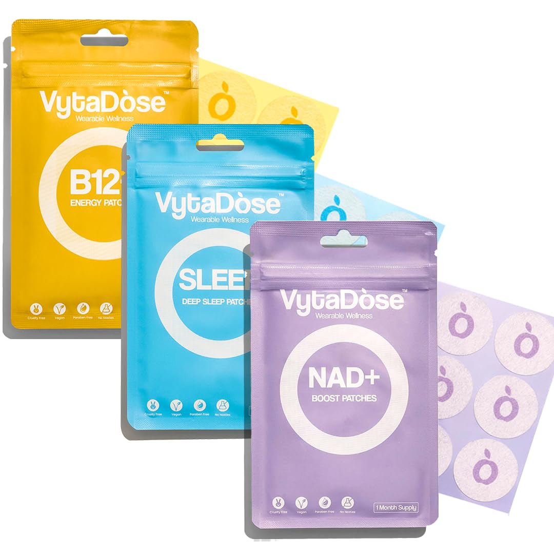 Vytadose Energy NAD+ & Sleep Support Patch Trio Topical Skin-Friendly Water-Resistant Patches for Daily Focus Wellness and Restful Routine