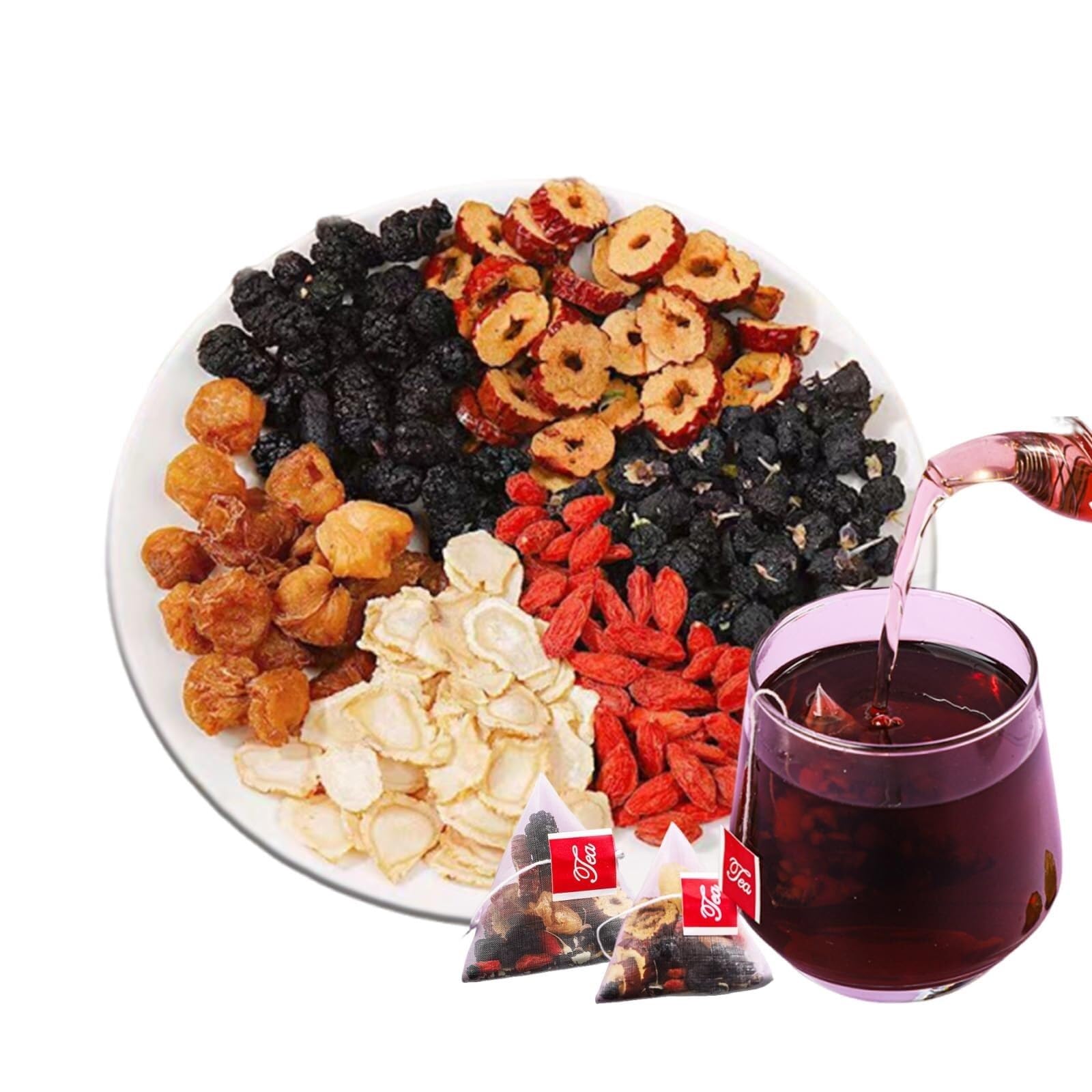 Specification: Name: Six Treasures Ginseng Root and Kidney Support Tea Ingredients: Ginseng (artificially cultivated, maximum five years), goji berry, Chinese yam, red date, maca, Siberian knotweed, mulberry, spider-leaf knotweed, Siberian galganorice, raspberry Shelf Life: 18 months (the stated time refers to the production date, not the expiration date) Product Type: Tea bag Specifications: 100g (20 x 5g bags) carton Packaging: 1 2 pack Six Treasures Ginseng Tea Storage: Store in a cool, dry place. Do not store for extended periods after opening to avoid changes in taste.Storage: Store in a cool, dry, and airtight place. The indicated time refers to the production date, not the shelf life. If you are unsure about the date, please contact us. Preparation: Pour the contents of one tea bag into a cup and add hot water. After five minutes, the tea is ready to drink. Each tea bag provides 5 to 6 infusions. Taste: Mild and sweet, taste carefully. With aromas of mulberry, ginseng, and red dates, this tea is deep in color and rich in essence. Essential Chinese herbal tea for men. Six Treasures Ginseng Kidney Tea Recipe.VZXATYOP 20 sachets de thé rénal formule ginseng thé six trésors, nettoyage des reins bio pour hommes, Te De RiñOnes Sadulable 20 pièces.DESCRIPTION DU PRODUIT Spécification : Nom : ginseng six trésors aide thé aux racines et aux reins Ingrédients : ginseng (cultivé artificiellement, maximum cinq ans), baie de goji, igname chinoise, datte rouge, maca, renouée de Sibérie, mûrier, renouée à feuilles araignées, galgan de Sibérie, framboises Durée de conservation : 18 mois (l'heure indiquée se réfère à la date de production, pas à la date d'expiration) Type de produit : sachet de thé Spécifications: 100g (20 sachets de 5 g ) carton Conditionnement : 1 2 paquet Thé au ginseng six trésors Conservation : conserver dans un endroit frais et sec. Ne pas conserver trop longtemps après ouverture pour éviter les changements de goût.Stockage : conserver dans un endroit sec, fermé et frais. L'heure indiquée se réfère à la date de production, pas à la durée de conservation. En cas de doute concernant la date, veuillez nous contacter. Préparation: verser le contenu d'un sachet dans une tasse et verser de l'eau chaude. Après cinq minutes, le thé est prêt à boire. Chaque sachet suffit pour 5 à 6 infusions. Goût : doux et sucré, goûter soigneusement, avec l'arôme de mûrier, de ginseng et de dattes rouges, la soupe à thé est profonde en couleur et riche en essence. Tisane chinoise essentielle pour homme. Recette de thé rénal ginseng thé six trésors.