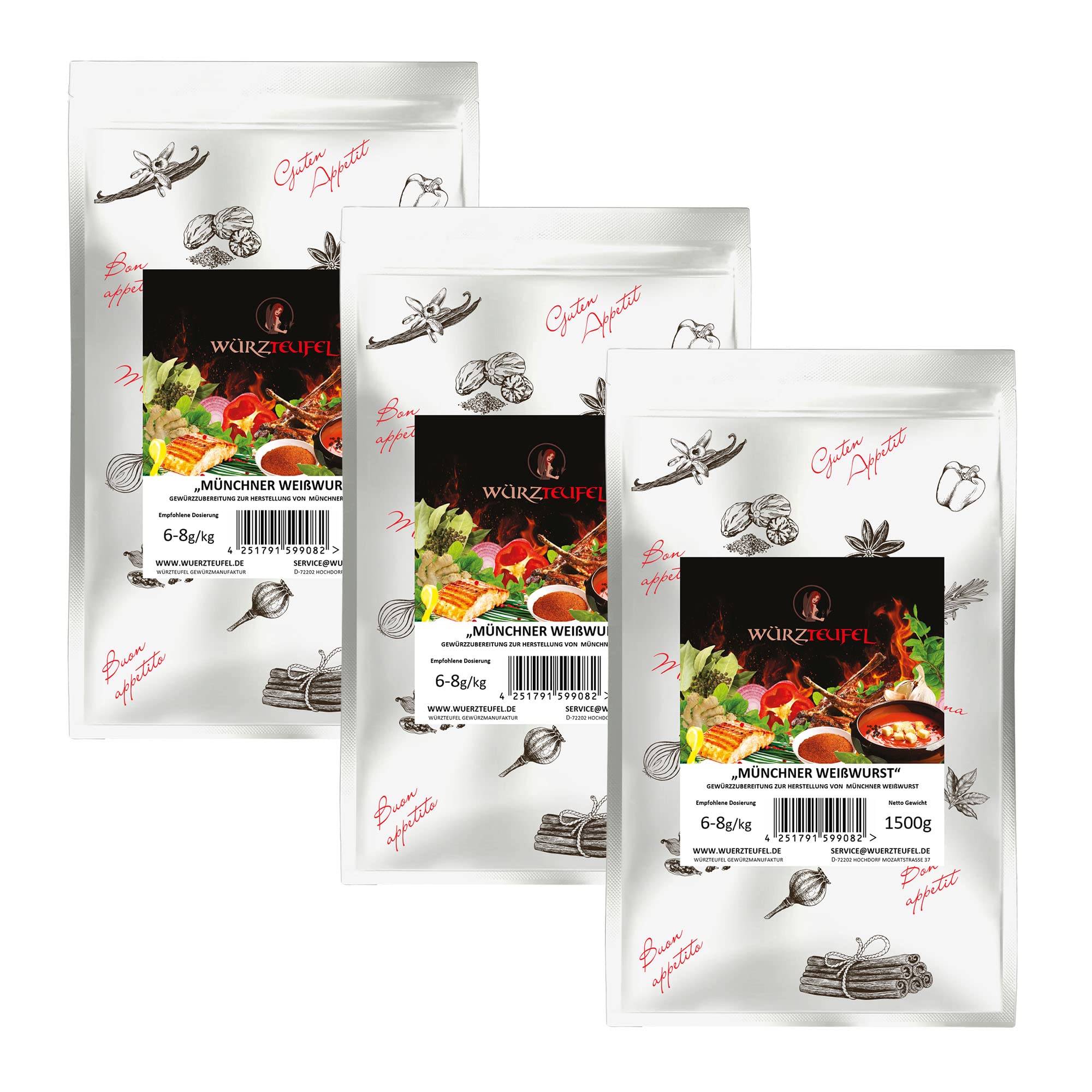 The original Münchner Weißwurst is and remains one of the most famous Bavarian specialties and has been since 1857. From tradition it is always produced early in the morning and also served in the morning with sweet mustard, Krazelen and freshly tapped wheat beer. The recipes of the old slaughter masters for "ihre" white sausage are usually a well-protected secret. Best veal, juicy pork, fresh flat-leaf parsley, a sense of tradition, and of course an accompanying dose of love – are really only a small part of it. ________________________________________________________________________________________________________________________________________________________________________________ Germany is famous for its huge variety of different types of sausages. But it's not just the big choice that the makes German sausage world famous. The best quality, excellent taste and the proverbial freshness are the decisive factors Factors that make the best sausage from a good sausage. The right herb obviously plays a very decisive role in this. Herbal Devil has an exquisite selection of the most popular herbal mixtures in Germany for you. Free from any artificial additives. Pure taste for the most popular sausage types in Germany and the best conditions for your success. _________________________________________________________________________________________________________________________________________ For more offers or more accurate product information on the topic of healthy living and enjoyment, visit us on the internet, or write us a message directly via customer request INGREDIENTS spices (lemon, nutmeg, white pepper, ginger), dextrose (dextrose), fine salt, edible herbs, natural herbal extracts (parsley, nutmeg blossom, pepper green, sweetcorn), essential lemon oil. INSTRUCTIONS FOR USE We recommend using an addition of between 6 and 8 grams per kilogram. See moreMünchner witte worst specerijen, Münchener witworst kruidenbereiding. 3 XL - zakje van 1500 g (4,5 kg) De originele Münchner Weißwurst is en blijft een van de bekendste Beierse specialiteiten en dat al sinds 1857. Uit traditie wordt hij altijd vroege ochtend geproduceerd en ook al 's ochtends met zoete mosterd, krazelen en vers getapt witbier geserveerd. De recepten van de oude slachtmeesters voor "ihre" witworst zijn meestal een goed beschermd geheim. Beste kalfvlees, sappig varkensvlees, verse bladpeterselie, een gevoel voor traditie, en natuurlijk een bijbehorende portie liefde – zijn er echt slechts een klein deel van. ________________________________________________________________________________________________________________________________________________________________________________ Duitsland is beroemd om zijn enorme verscheidenheid aan verschillende worstsoorten. Maar het is niet alleen de grote keuze die de Duitse worst wereldberoemd maakt. De beste kwaliteit, uitstekende smaak en de spreekwoordige frisheid zijn de beslissende Factoren die de beste worst maken van een goede worst. Het juiste kruid speelt daarbij natuurlijk een heel beslissende rol. Kruidenduivel heeft voor jou een uitgelezen selectie van de populairste kruidenmengsels in Duitsland. Vrij van elke kunstmatige additieven. Pure smaak voor de populairste worstsoorten in Duitsland en de beste voorwaarden voor jouw succes. ____________________________________________________________________________________________________________________________________ Voor meer aanbiedingen of nauwkeurigere productinformatie over het thema gezond leven en genieten, bezoek ons op het internet, of schrijf ons een bericht rechtstreeks via -klantenverzoek INGREDIËNTEN specerijen (citroen, nootmuskaat, witte peper, gember), druivensuiker (dextrose), fijn eetzout, eetkruiden, natuurlijke kruidenextracten (peterselie, muskaatbloesem, pepergroen, liefstvoetjes), etherische citroenolie. GEBRUIKSAANWIJZING Wij raden aan om een toevoeging tussen 6 en 8 gram per kilogram te gebruiken. Meer bekijken