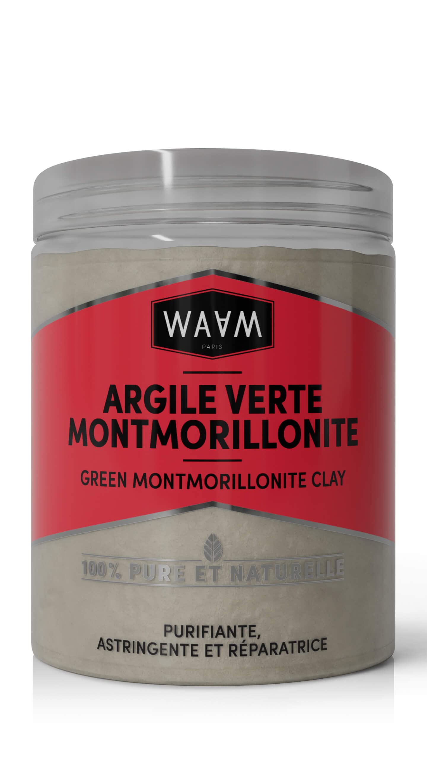 ETHICAL ECO-FRIENDLY: Our products are packaged in recyclable packaging designed to minimize environmental impact, with no excess packaging or unnecessary accessories. ABSORBENT: Naturally alkaline, green clay has a high absorption capacity, allowing it to absorb excess sebum and impurities from the skin. It is perfect for deep cleansing and purifying the skin. REGENERATING: Thanks to the healing properties of silica, aluminum, and zinc, green clay promotes skin tissue regeneration and combats premature skin aging. NUMEROUS BENEFITS: Rich in magnesium and trace elements, it is ideal for cleansing, decongesting, and remineralizing normal to oily skin. 100 PURE NATURAL: Our clays are 100 pure and natural, non-ionized, preservative-free, color-free, sourced from isolated quarries in the wild with an excellent clay mineral content.ÉTHIQUE ÉCORESPONSABLE : Nos produits sont conditionnés dans des emballages recyclables conçu pour limiter l'impact sur l'environnement, sans suremballage et sans accessoire de conditionnement superflu. ABSORBANTE : Naturellement alcaline, l'argile verte possède un pouvoir absorbant élevé, elle permet d'absorber l'excès de sébum et les impuretés de la peau. Elle est parfaite pour nettoyer et purifier la peau en profondeur. RÉGÉNÉRANTE : Grâce aux propriétés cicatrisantes de la silice, de l'aluminium et du zinc, l'argile verte favorise la régénération des tissus cutanés, et lutte contre le vieillissement prématuré de la peau. NOMBREUX BIENFAITS : Riche en magnésium et en oligo-éléments, elle est idéale pour nettoyer, décongestionner et reminéraliser les peaux normales à grasses. 100 PURE NATURELLE : Nos argiles sont 100 pures et naturelles, non ionisées, sans conservateurs, sans colorant, provenant de carrières isolées en milieu sauvage avec une excellente teneur en minéraux argileux.WAAM Cosmetics – Argile Verte Montmorillonite – 100 pure et naturelle – Argile purifiante et réparatrice – 250g