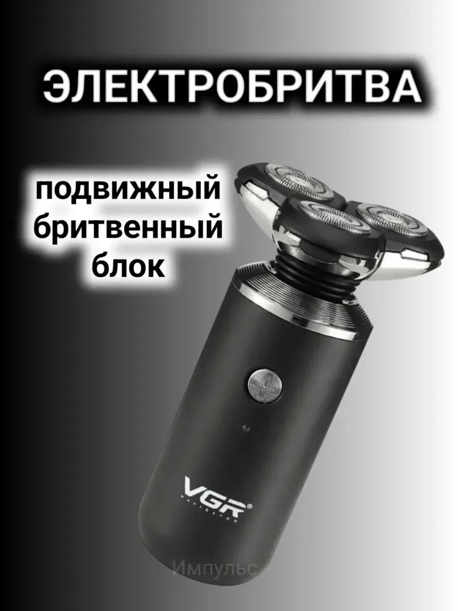 Портативная бритва VGR — это роторная бритва для сухого и влажного бритья. Она оснащена тремя бритвенными головками и подвижным бритвенным блоком. Бритва водонепроницаема и может промываться под водой. Она работает от аккумулятора и от сети, время работы от аккумулятора составляет 150 минут.