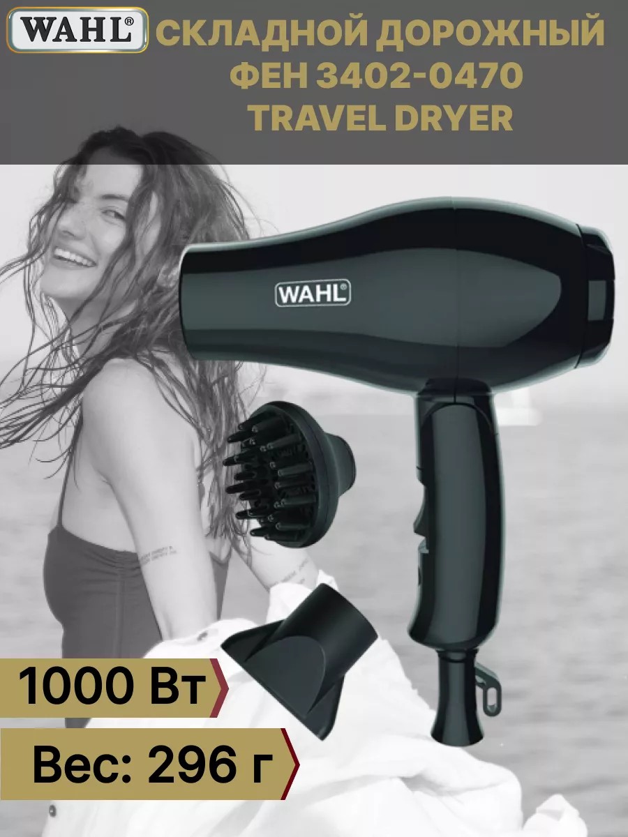 The stylish WAHL 3402-0470 travel hair dryer will be an indispensable item on the go, allowing you to quickly dry your hair or style it.