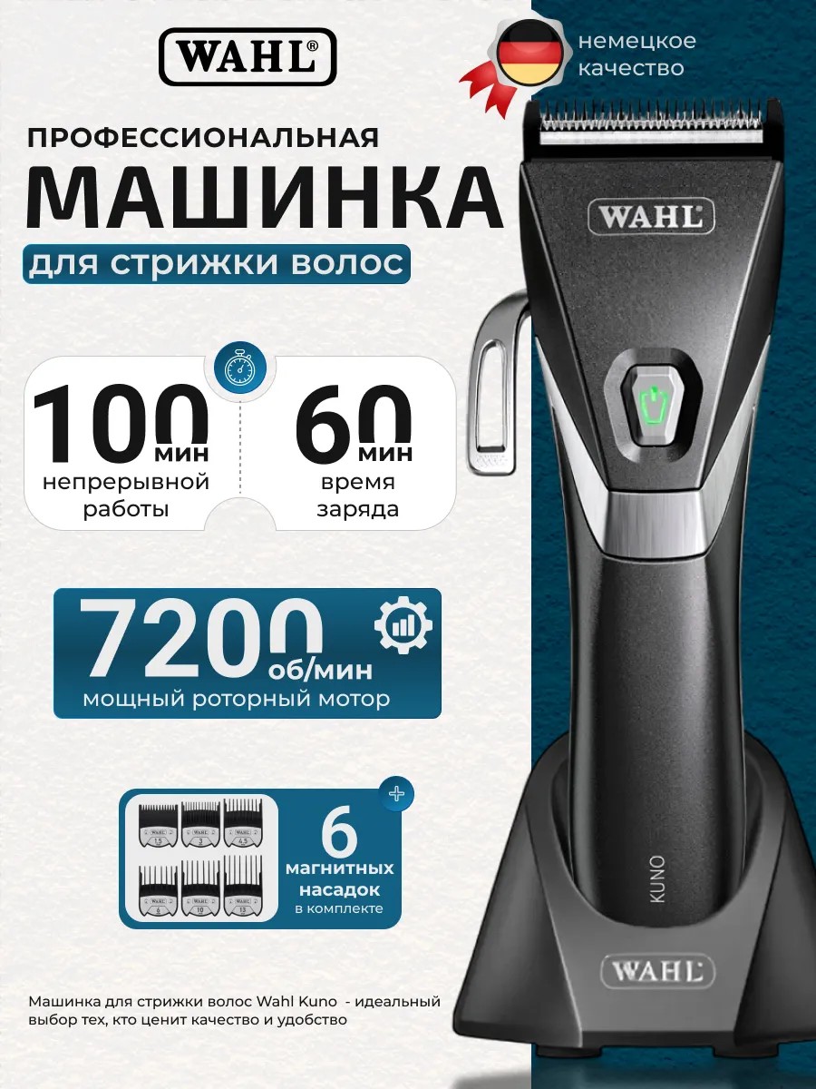 Машинка для стрижки Wahl Kuno 1887-0470 идеальный выбор для тех, кто ценит качество и удобство. Оснащенная инновационным рычагом для плавной регулировки длины стрижки, она позволяет легко добиться желаемого результата. Новое высокоточное алмазное лезвие, изготовленное в Германии, обеспечивает длительный срок службы и может быть промыто водой, что упрощает уход за устройством.