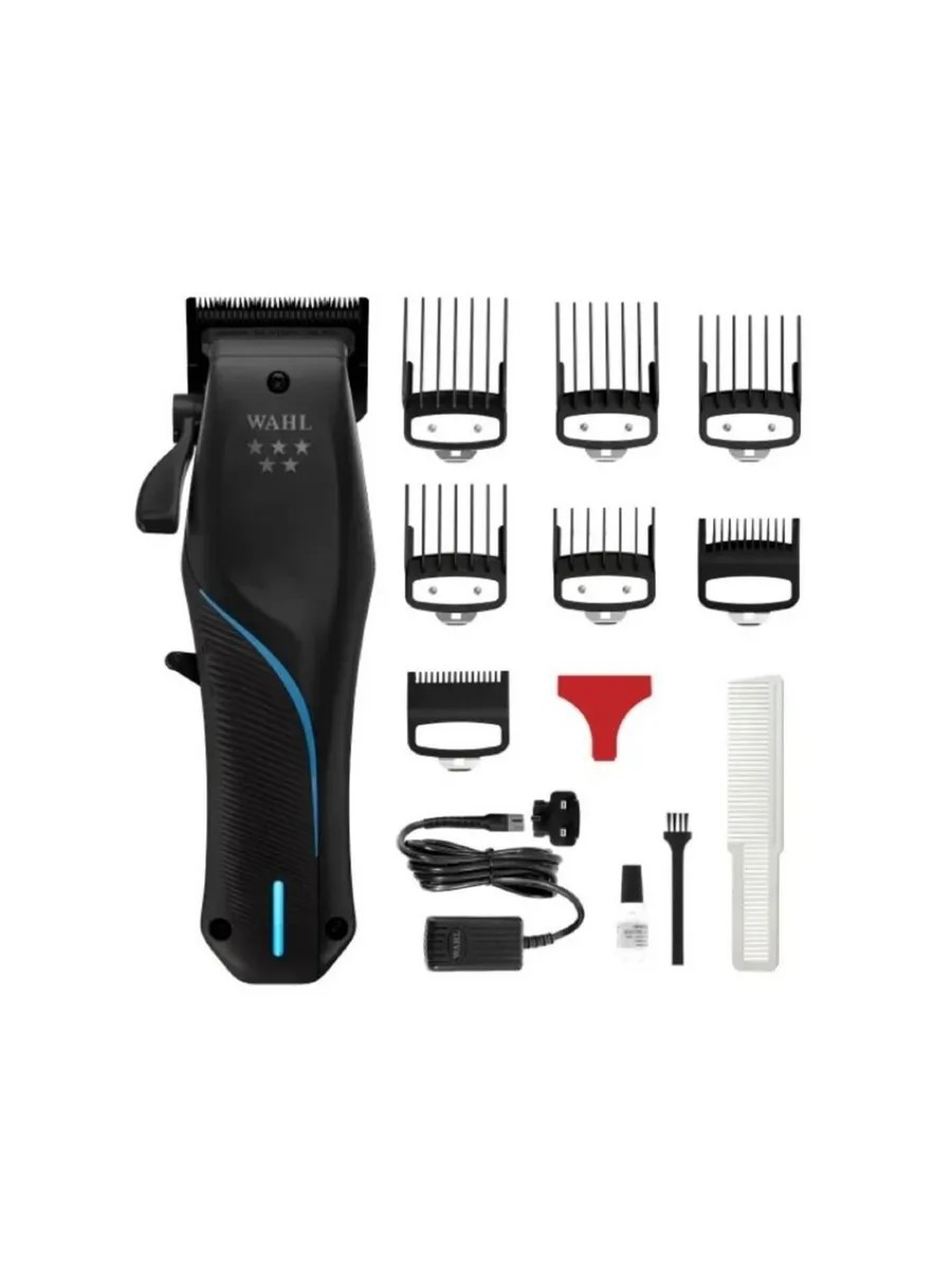 | Комплектация | машинка для стрижки Wahl Vapor; 7 шт насадок для машинки Vapor; блок питания машинки; щёточка для чистки; Масло для ножевого блока; фирменная расчёска Wahl |