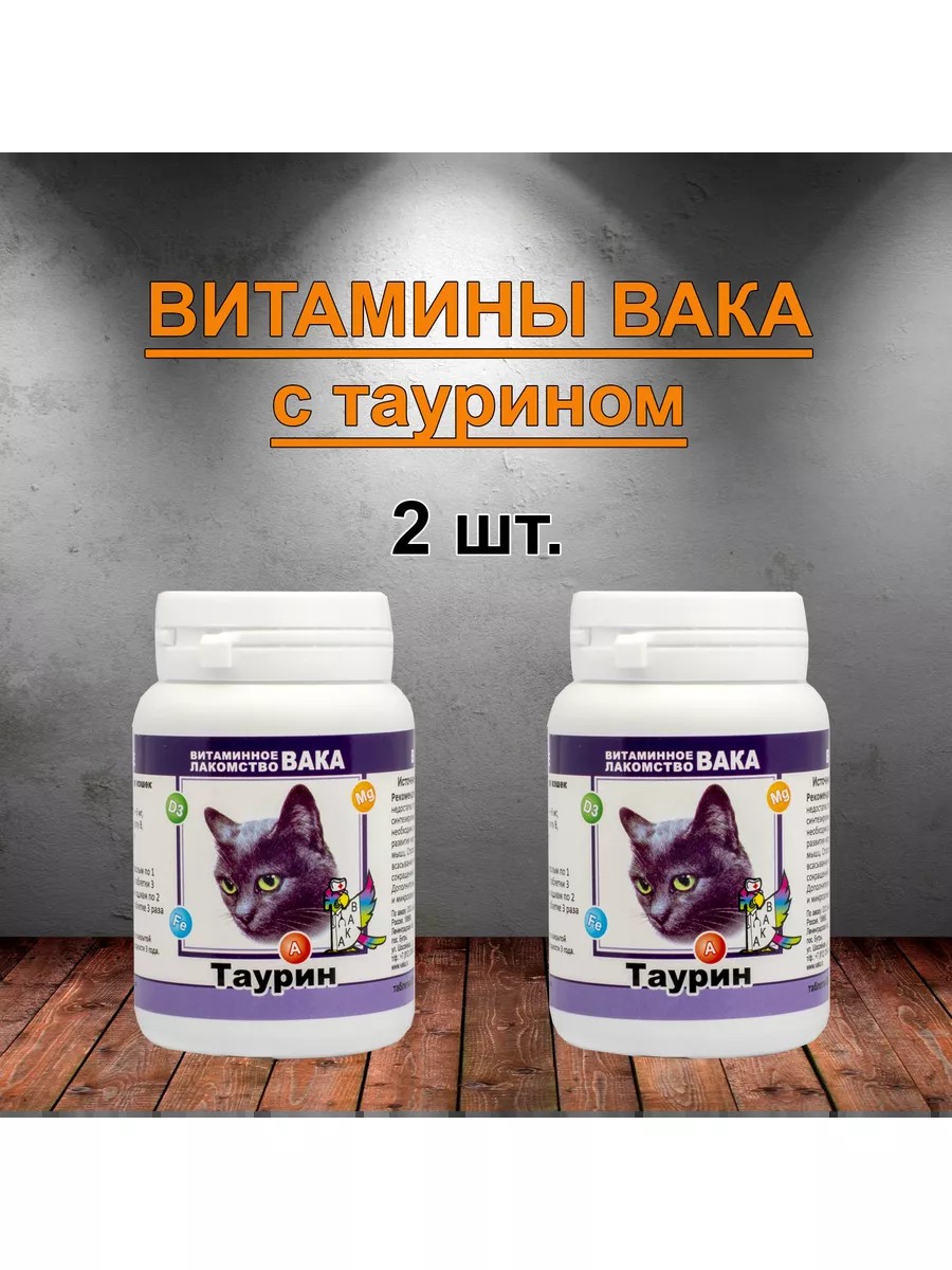 VAKA Vitamins for Cats with Taurine. Recommendations: The important amino acid taurine is not synthesized by the cat's body. Therefore, it must be supplied additionally. - for proper development of kittens - to improve vision - to strengthen the nervous system during stress - prevention of the cardiovascular system. Ingredients: 1 tablet contains: taurine - 6 mg, protein - 0.1 g, vitamins: A, D3, E, group B, nicotinic acid, macro- and microelements. Application: prevention: kittens - 0.5 tablets 3 times a day adult cats - 1 tablet 3 times a day therapeutic purposes: kittens - 1 tablet 3 times a day adult cats - 2 tablets 3 times a day.