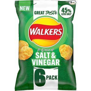 Walkers Less Salt Dash of Salt & Vinegar 6pk Green