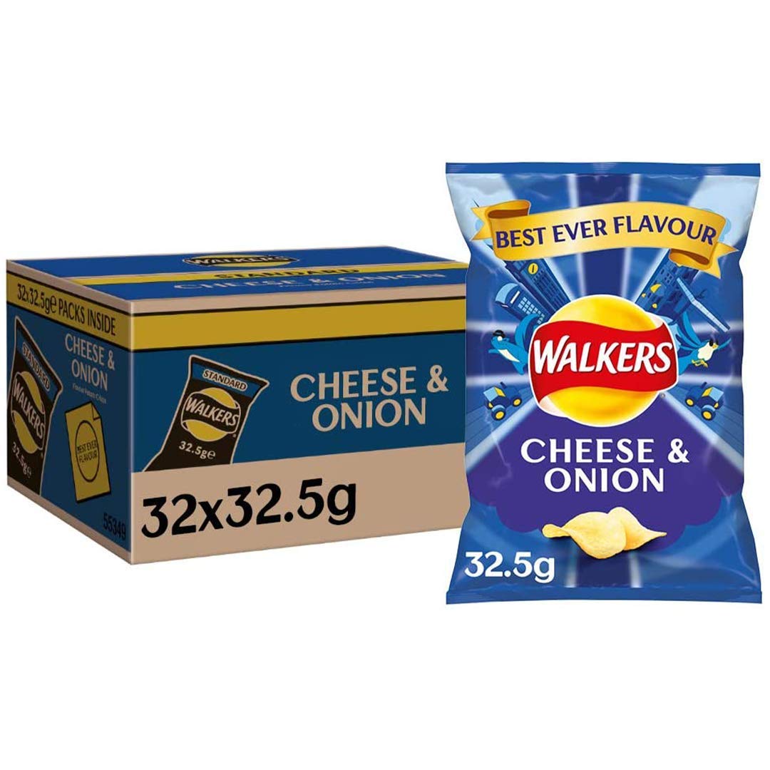 Walkers Lot de 32 boîtes de chips au fromage et à l'oignon 32,5 g