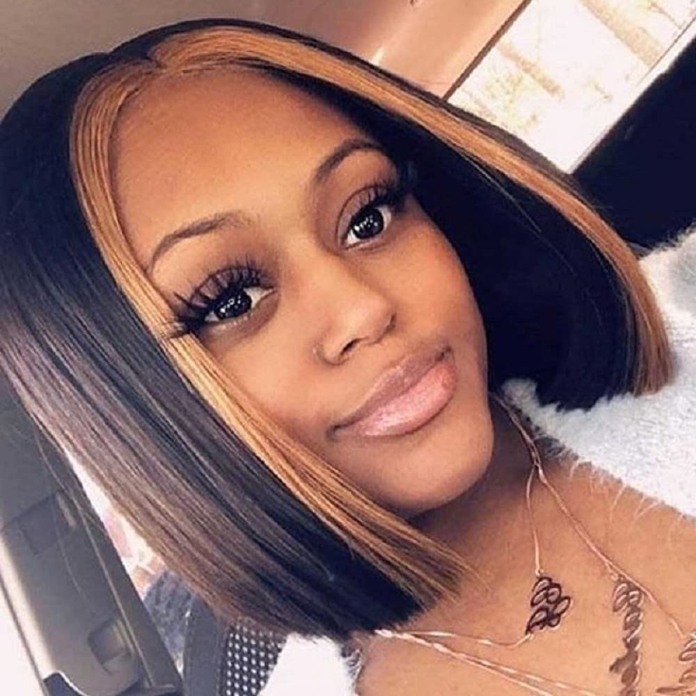 Perücke Schwarz Bob Kurz Lace Front Perücke 9 Zoll/22cm Highlight Blond Gerade Bob Perücke für Frauen Transparente Spitze Haaransatz Short Bob Wigs for Women 4"Transparent lace scalp L2/30#